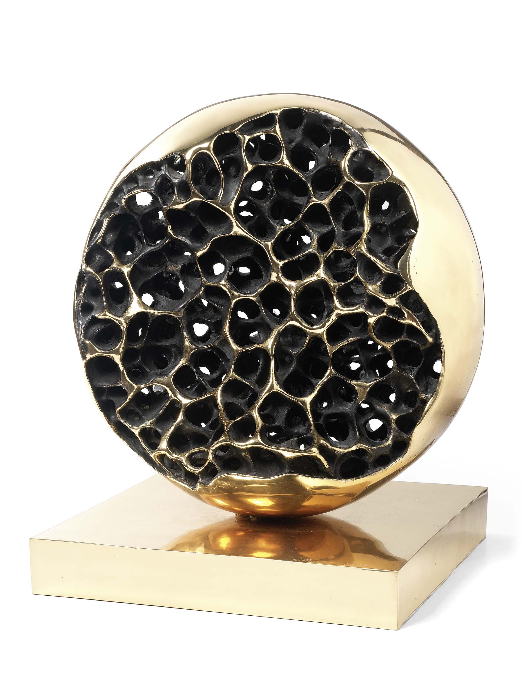 Gianfranco Meggiato Venezia 1963 Sfera erosa Scultura in bronzo, es. II/III P.A., cm. 53 h. (con base) Firma e tiratura sulla base: G. Meggiato II/III P.A. Vendita per conto del Tribunale di Livorno.