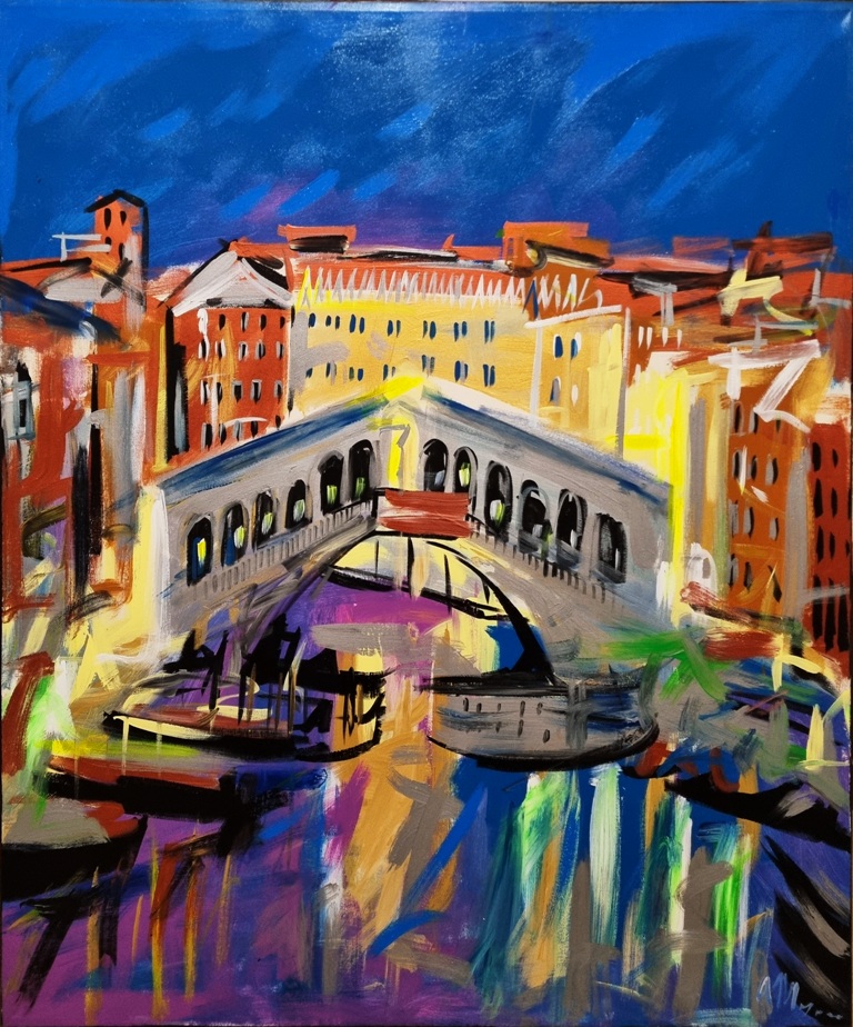 MANGONE ALFONSO Altavilla Silentina 1958 "Venezia" Acrilico su tela cm 100x120 del 2012. Firmato sul fronte in basso a destra. Sul retro firmato e datato. Autentica su foto a cura dello Studio Mangone.