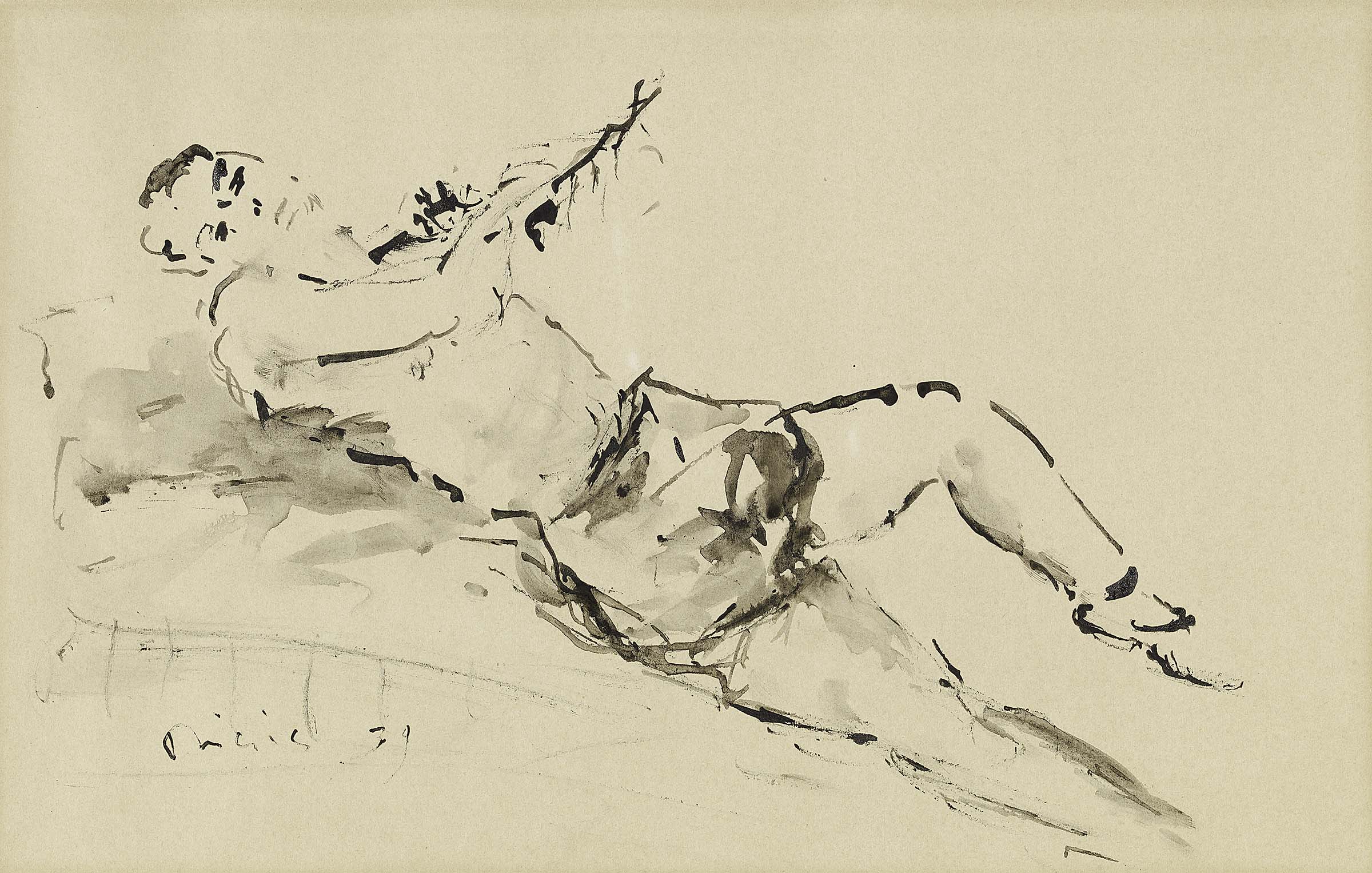Filippo de Pisis Ferrara 1896 - Milano 1956 Giovane disteso, 1939 China su carta, cm. 31,4x48 Firma e data in basso a sinistra: Pisis 39. Certificato Associazione per Filippo de Pisis, Milano, 1 aprile 2014, con n. 04349.