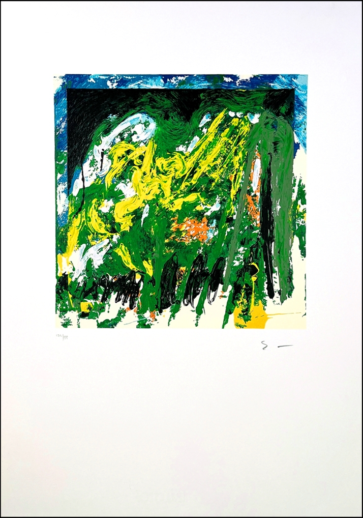 SCHIFANO MARIO Libia 1934 - Roma 1998 "Senza titolo" Serigrafia materica cm 50x70. Firma dell'artista e timbro a secco "Schifano" in basso a destra, tiratura a sinistra.