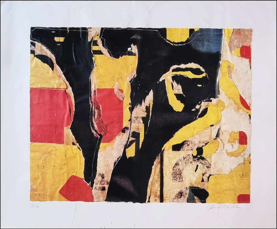 ROTELLA MIMMO Catanzaro 1918 - Milano 2006 "Senza titolo" Serigrafia e collage su cartoncino cm 110x90. Firmata sul fronte in basso a destra, tiratura 45/100 a sinistra.