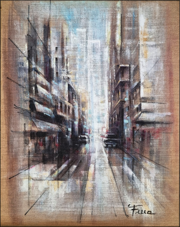 FENA Lecce 1958 "Senza titolo" Acrilico e tecnica mista su tela di juta cm 56x70. Firmato sul fronte in basso a destra, firma con ideogramma al retro. Autentica dell'Artista su foto.