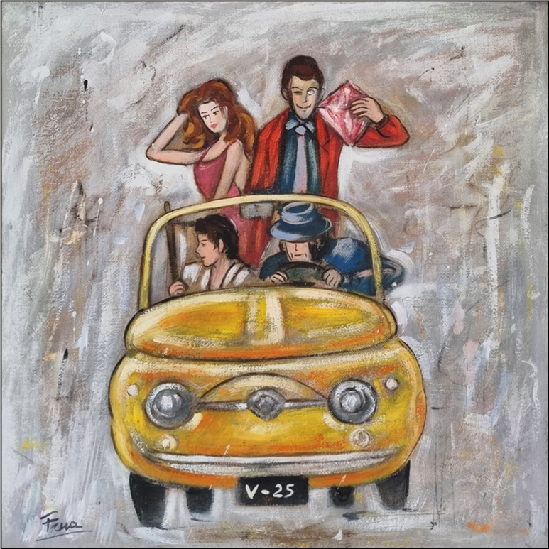 FENA Lecce 1958 "Lupin" Acrilico e tecnica mista su tela di juta cm 59x59. Firmato sul fronte in basso a sinistra, firma con ideogramma al retro. Autentica dell'Artista su foto.
