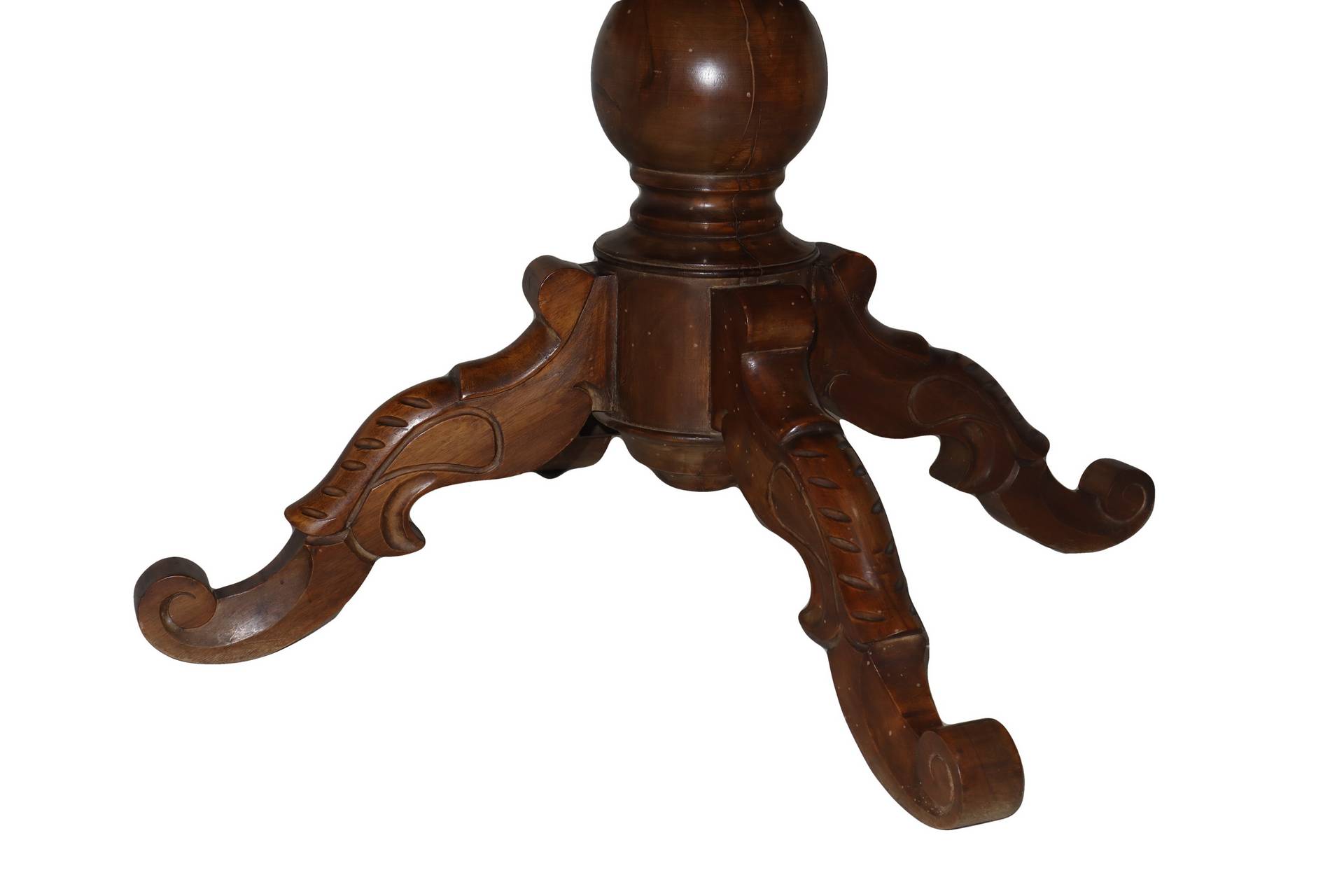 Tavolo rotondo allungabile, primi 20° secolo h cm 78, diametro cm 118 In legno di noce, piede a quattro razzeIn legno d