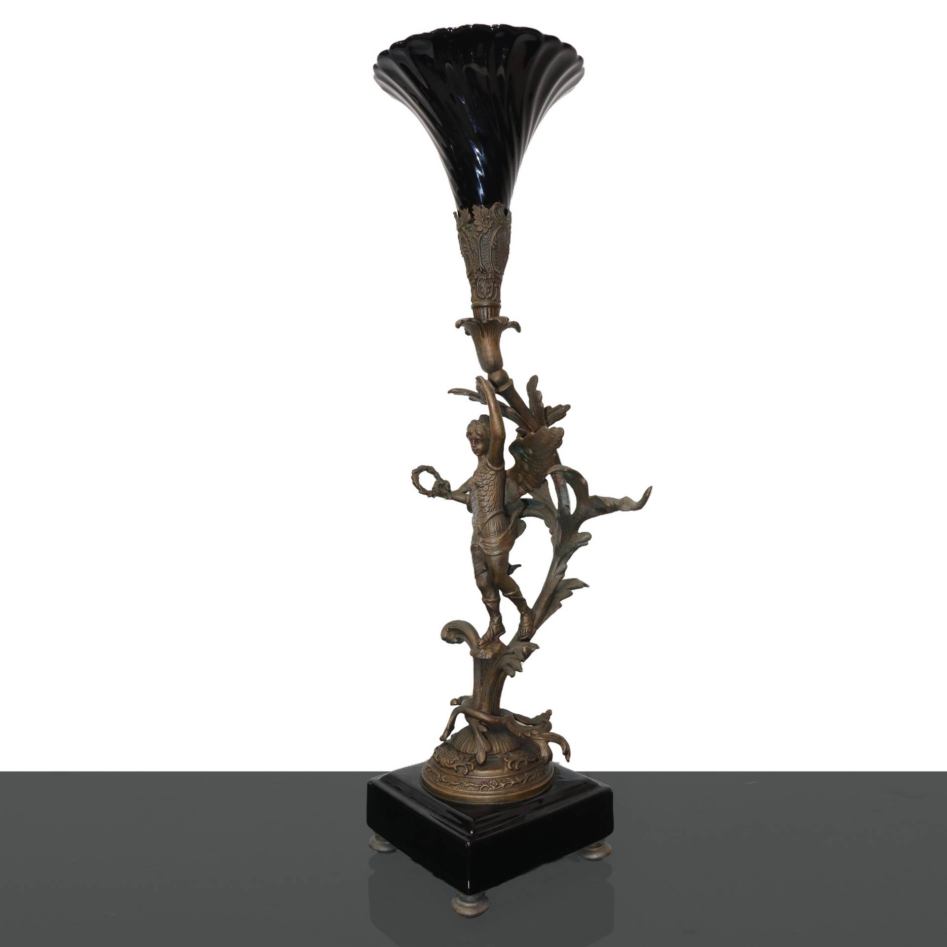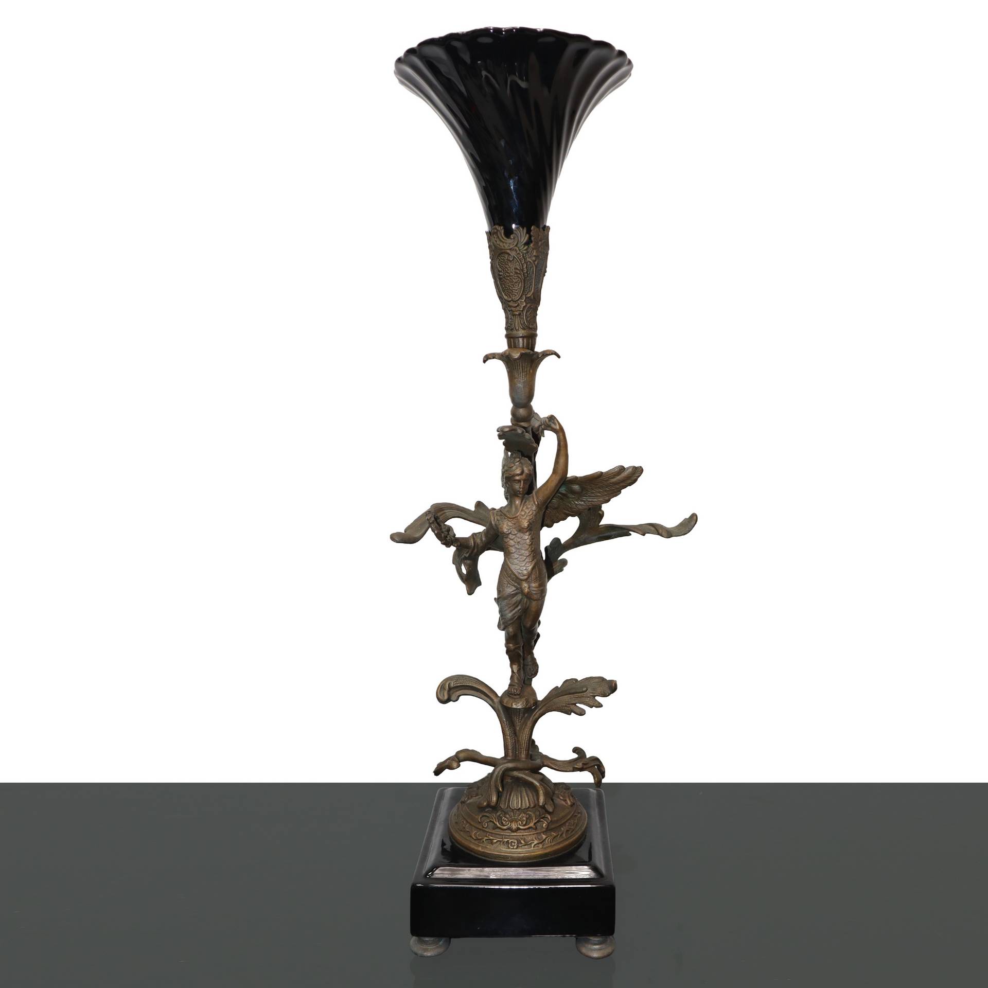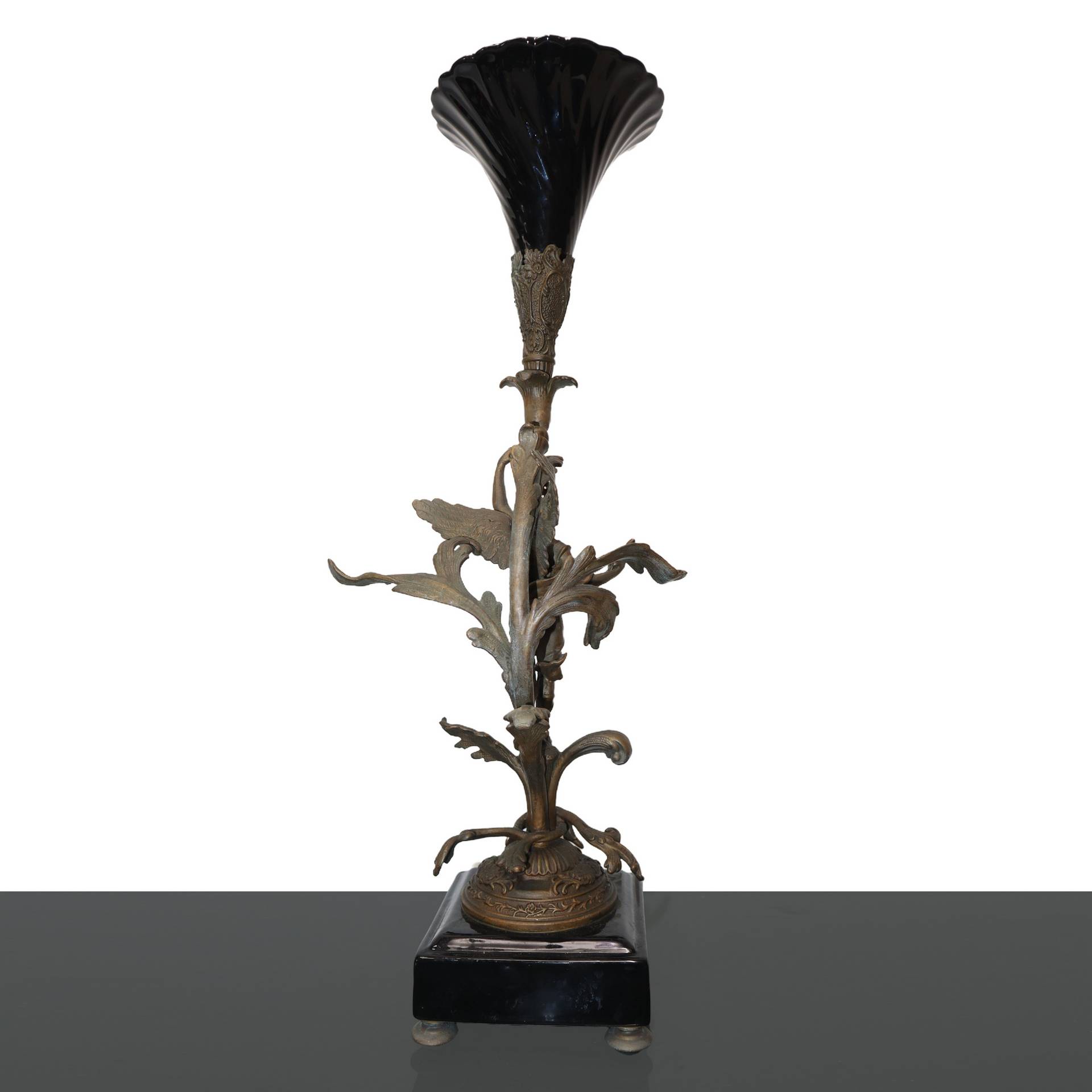 Scultura in metallo con calice in vetro H cm 45 diametro cm 16 Con base in ceramica Con base in ceramica