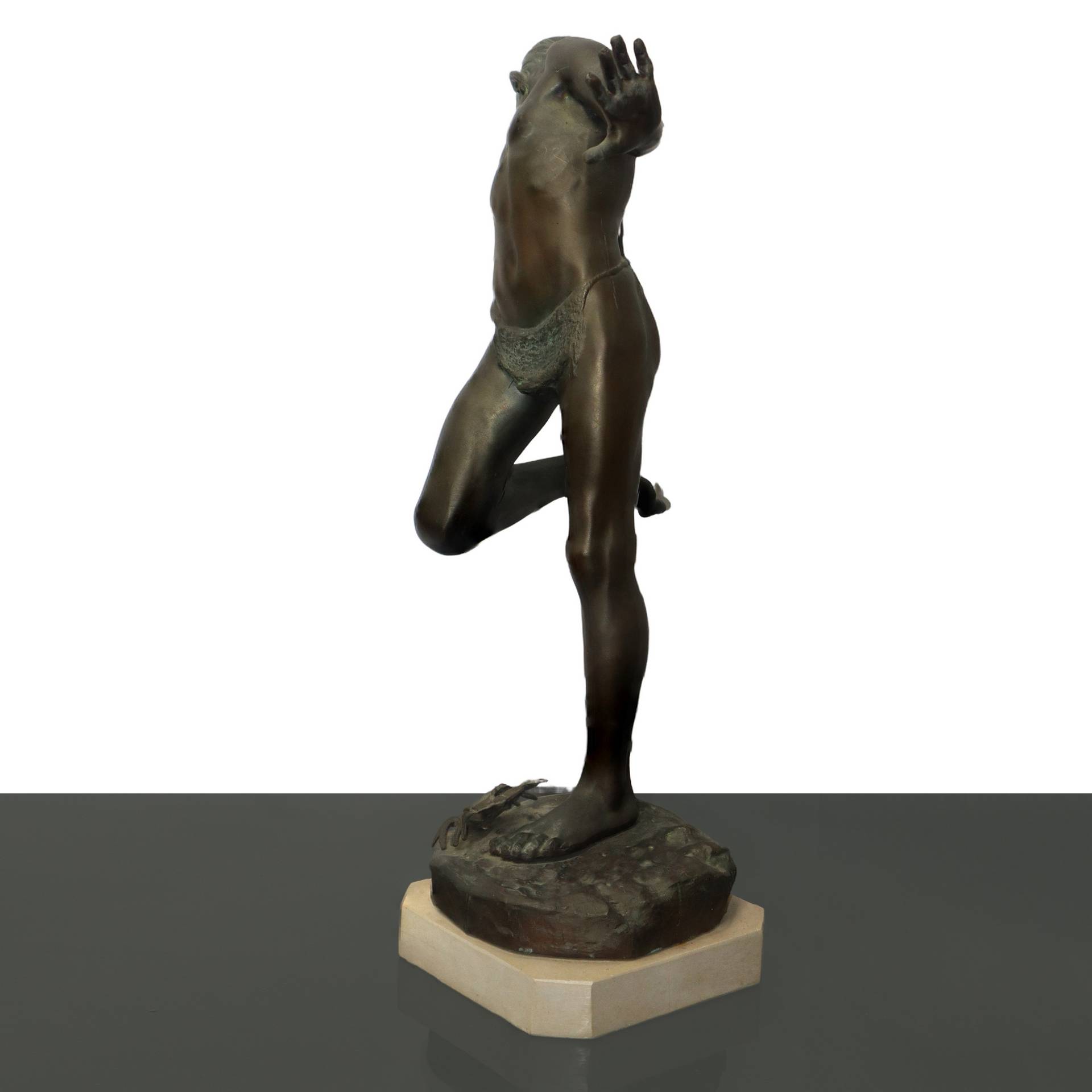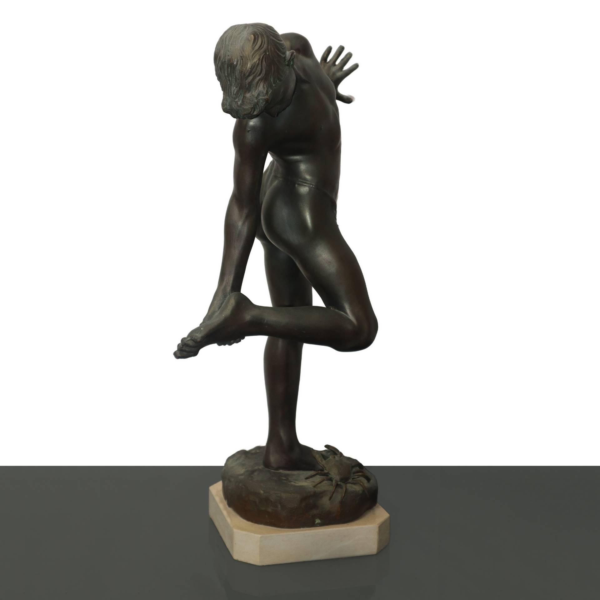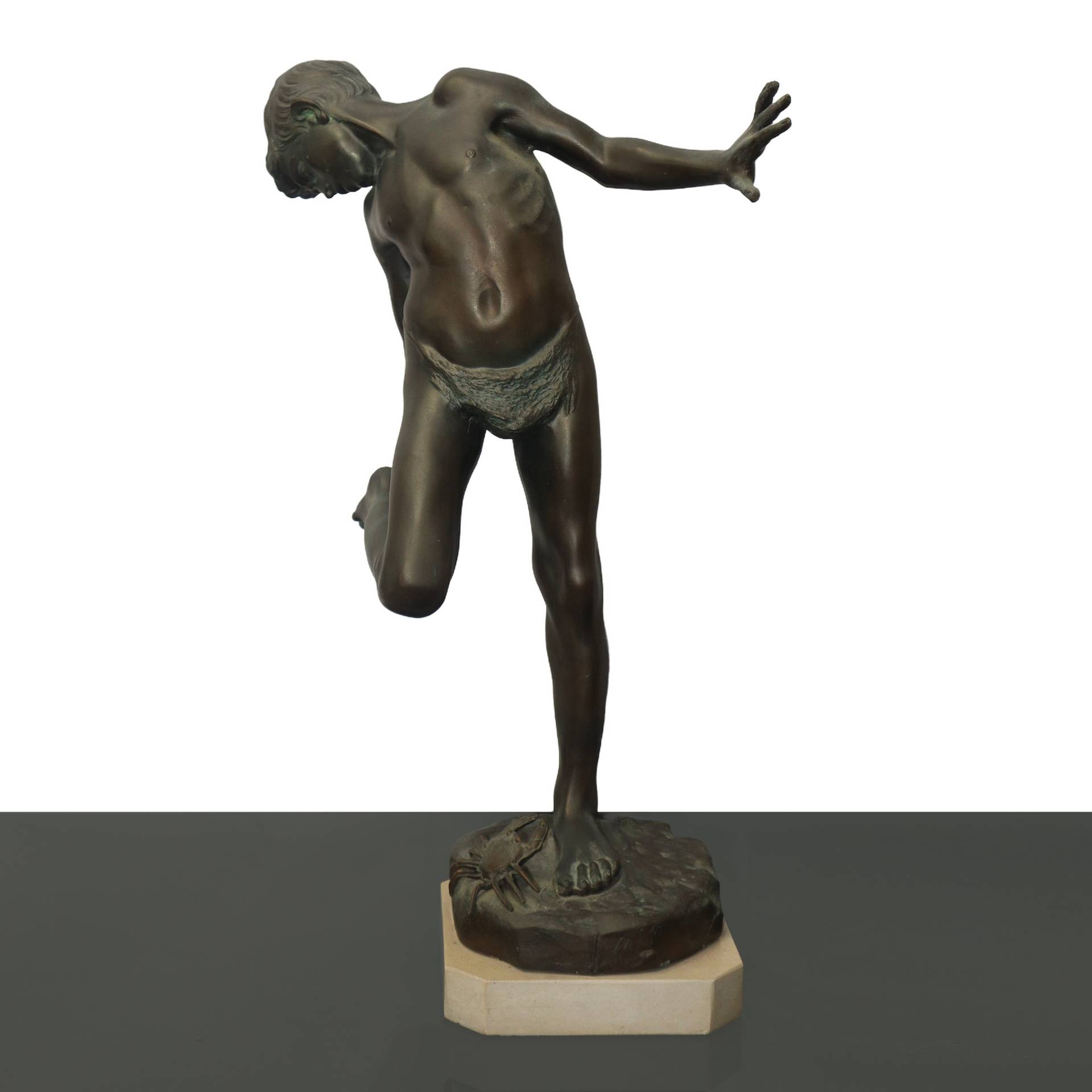 Ragazzo morso dal granchio, primi 20° secolo H cm 50 - base H cm 17x17 Scultura in antimonio, base in marmoScultura in