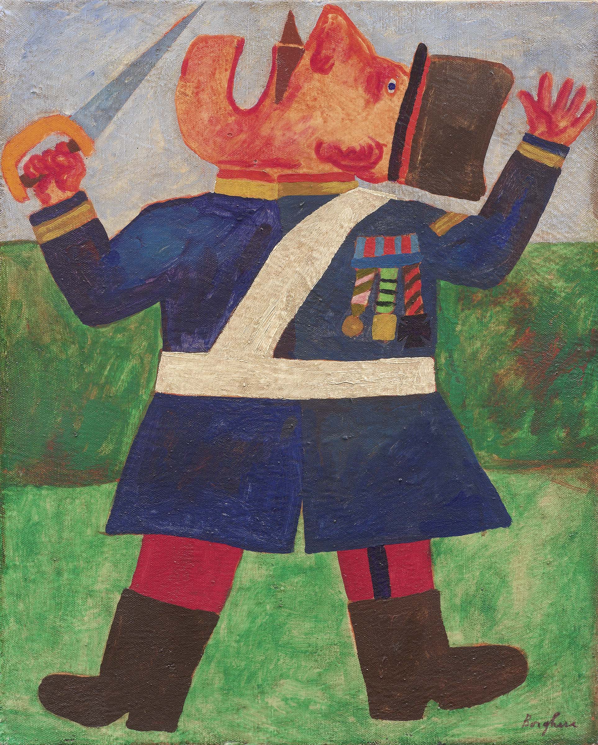 Franz Borghese Roma 1941 - 2005 Soldato Olio su tela, cm. 50x40,4 Firma in basso a destra: Borghese.