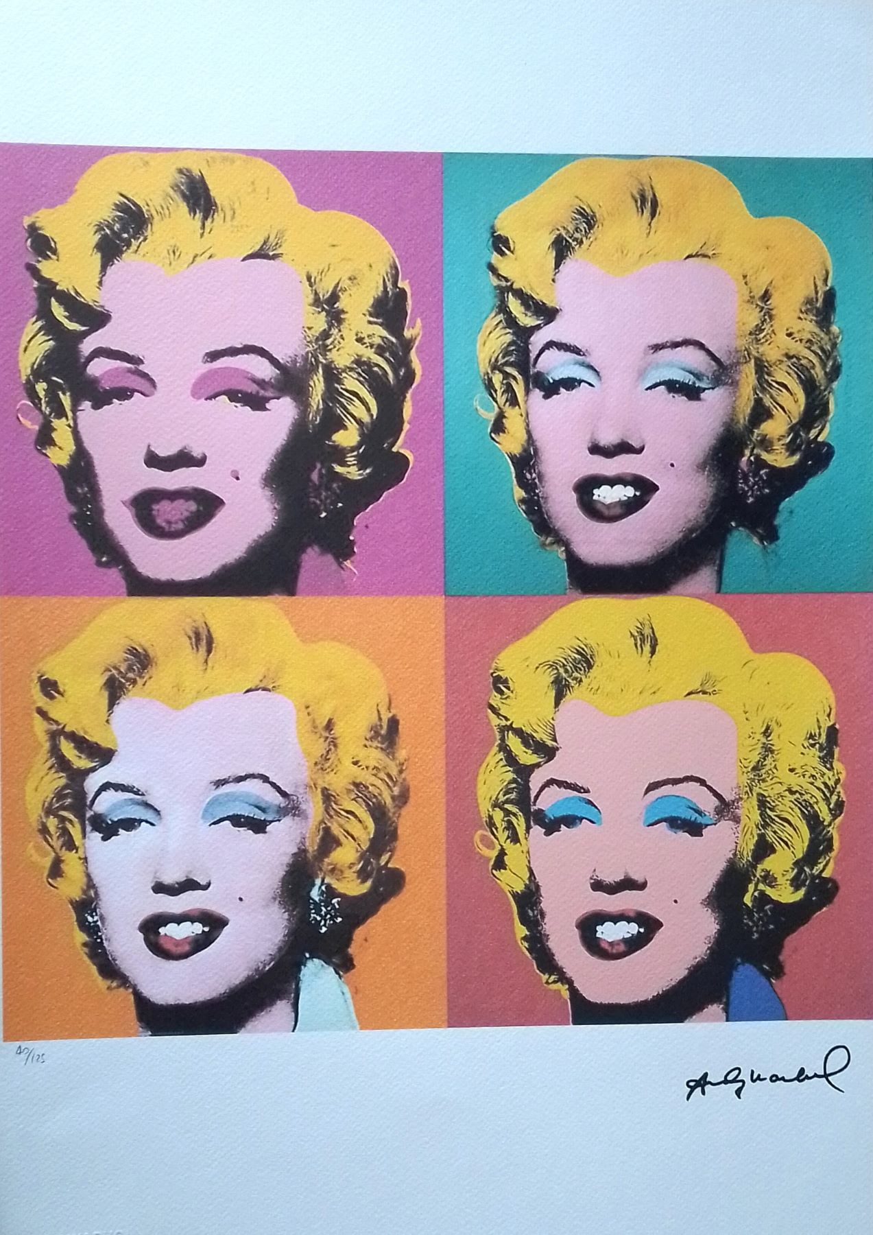 Da Collezione Privata, ANDY WARHOL (1928-1987) Litografia a Colori su Carta Arches CM 50X35 Titolo -Marilyn 4D- al Fronte, Firma in Lastra e Tiratura a Matita, e Timbro a Secco Andy Warhol e Fundazion Andy Warhol, Su Catalogue Raisonne' 1962-1987, Certificato Accluso