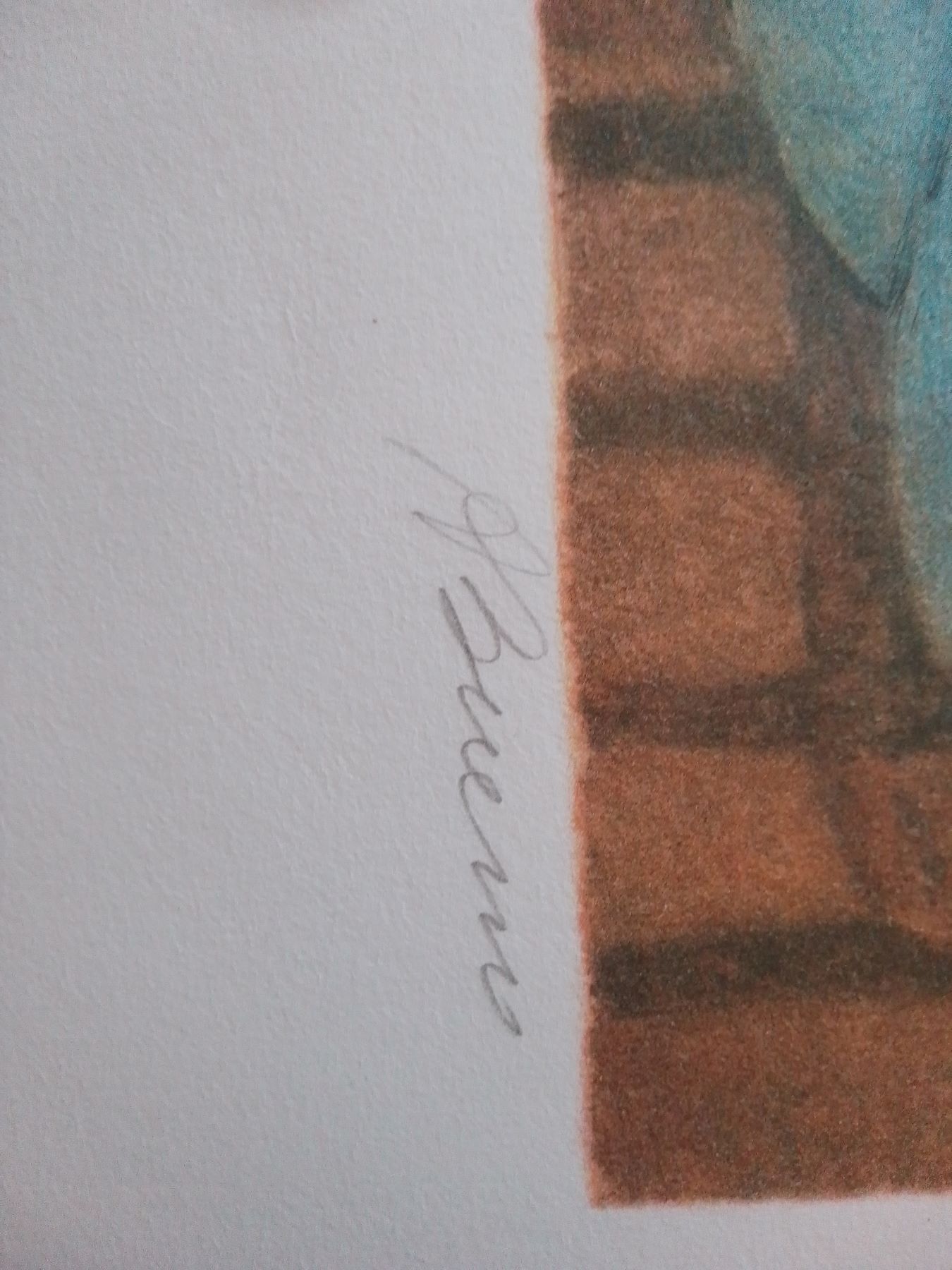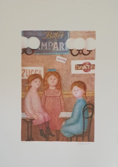 Da Collezione Privata, ANTONIO BUENO (1918-1984) Litografia a Colori 1990 Titolo -Amiche al Bar- CM 50X70 Firma e Tiratura Prova D'Autore a Matita al Fronte Timbro Secco