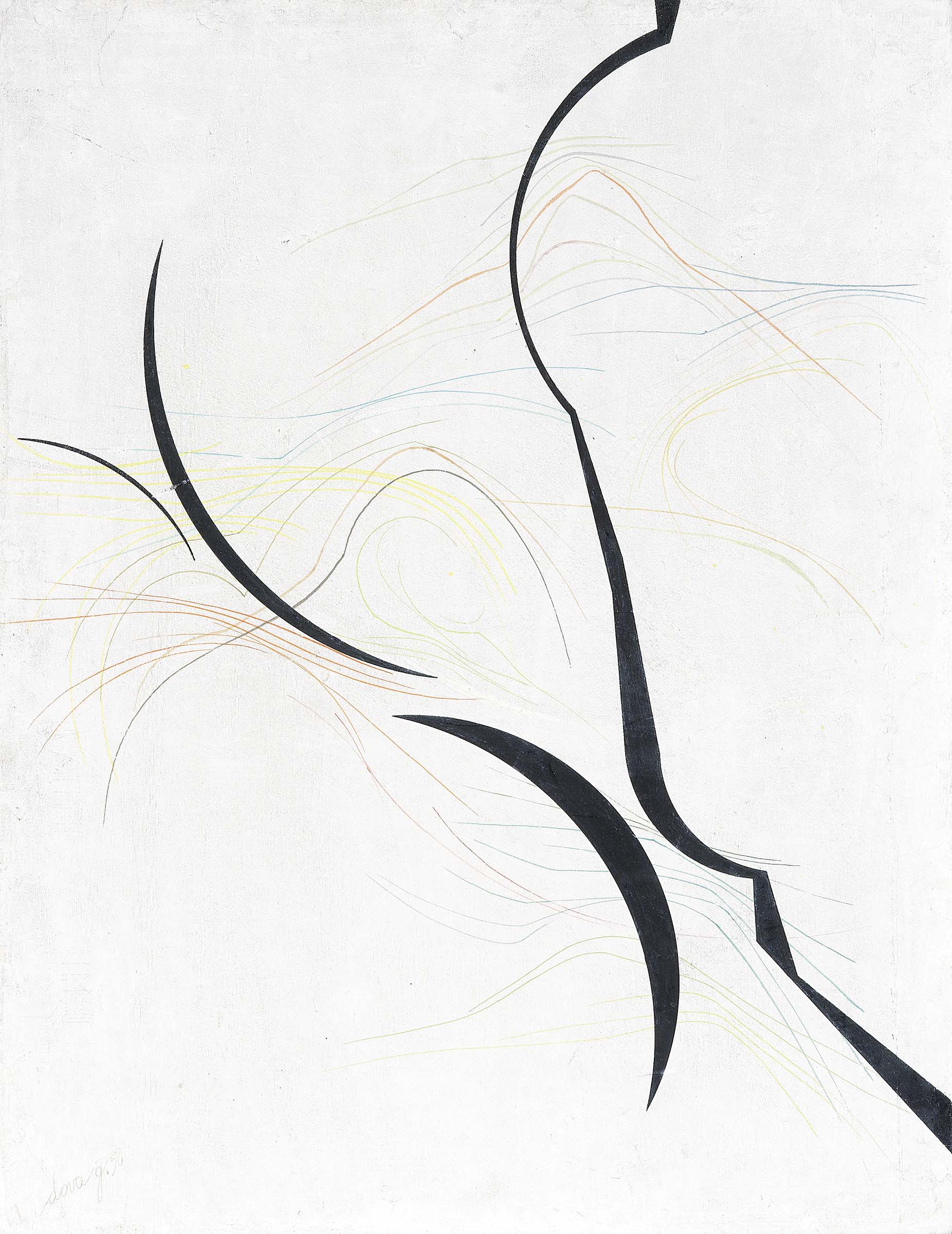 Gianni Dova Roma 1925 - Pisa 1991 Composizione, 1950 Tecnica mista su tavola, cm. 45,2x35 Firma e data in basso a sinistra: Dova G. 50; al verso firma: Dova.