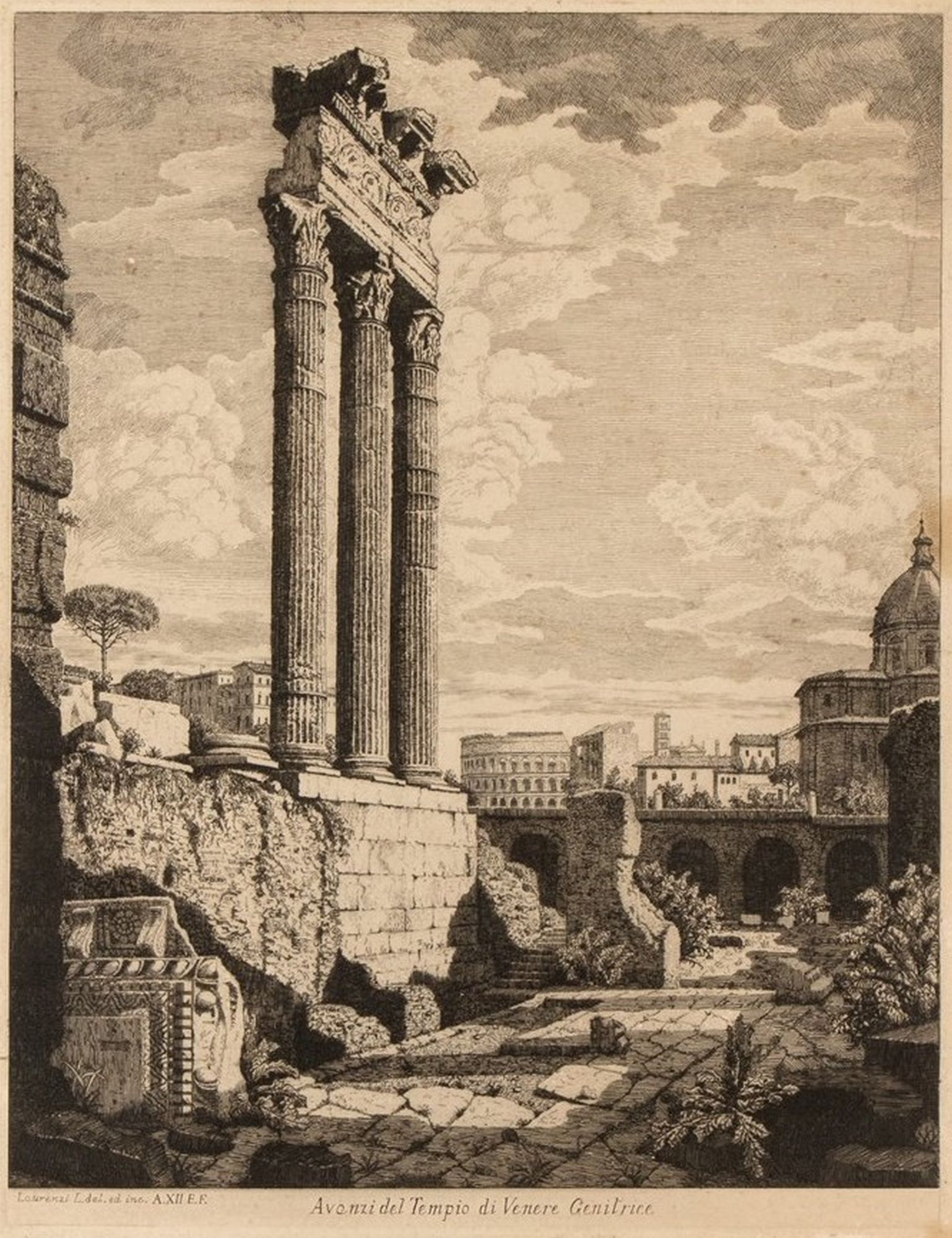 Laurenzio Laurenzi (1878 - 1946) Avanzi del tempio di Venere genitrice 1912?