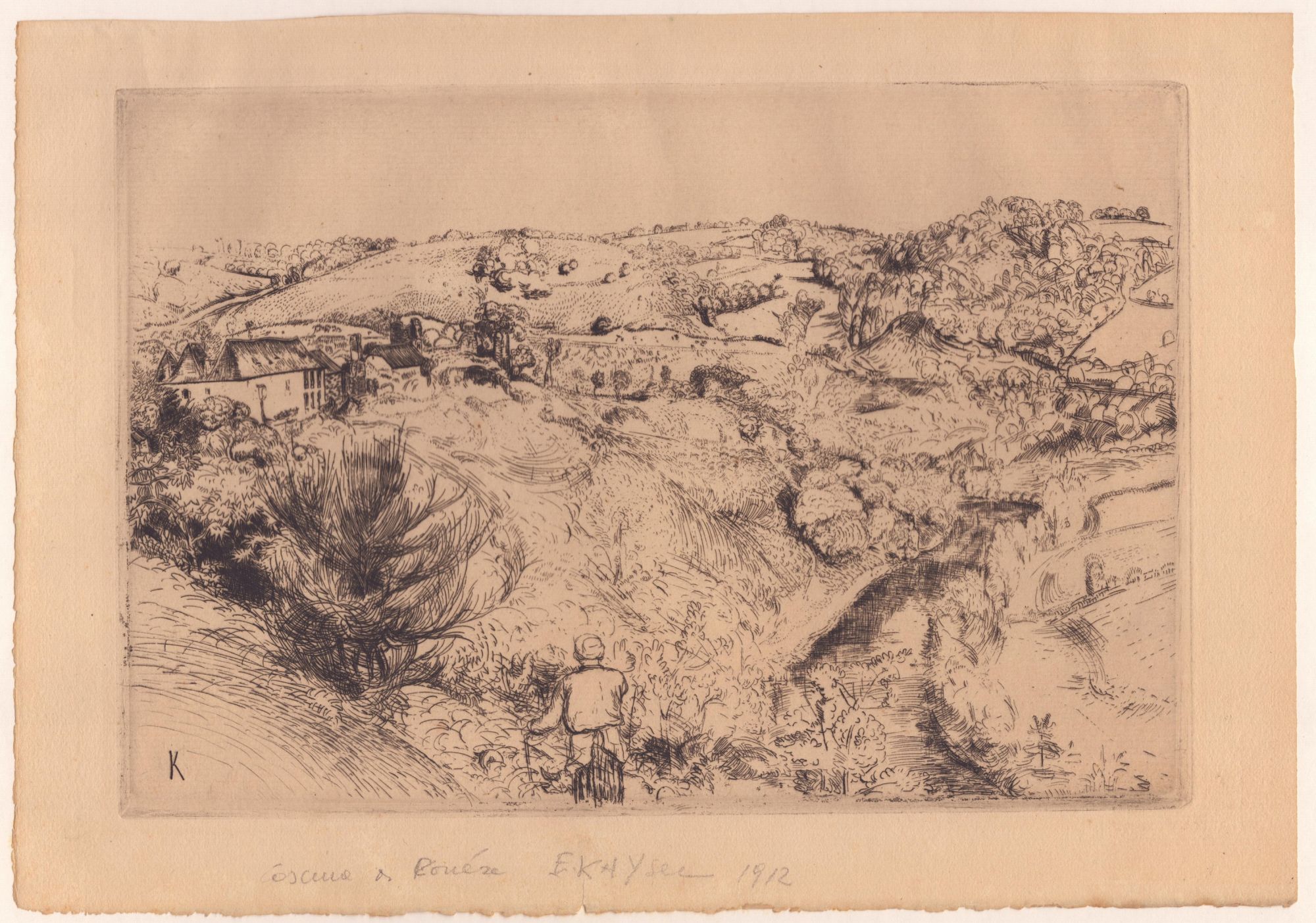 Edmond Kayser (1882 - 1965) Paesaggio con un fiume