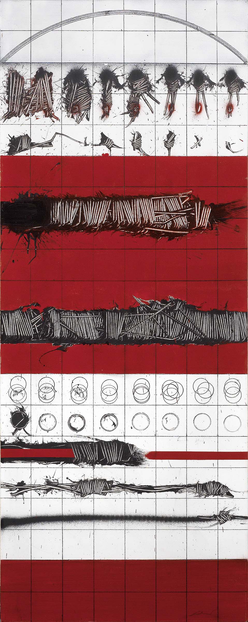 Emilio Scanavino Genova 1922 - Milano 1986 Alfabeto senza fine (Un racconto), 1970 Olio su tavola, cm. 200x80 Firma in basso a destra: Scanavino; firma, data e titolo al verso: Scanavino / 1970 / Alfabeto senza fine / "Un racconto". Storia: Collezione privata, Monza; Collezione privata Bibliografia: Carlo Pirovano, Giorgina Graglia Scanavino, Scanavino. Catalogo generale volume primo, Electa, Milano, 2000, p. 377, n. 1970 58. Vendita per conto del Tribunale di Livorno.