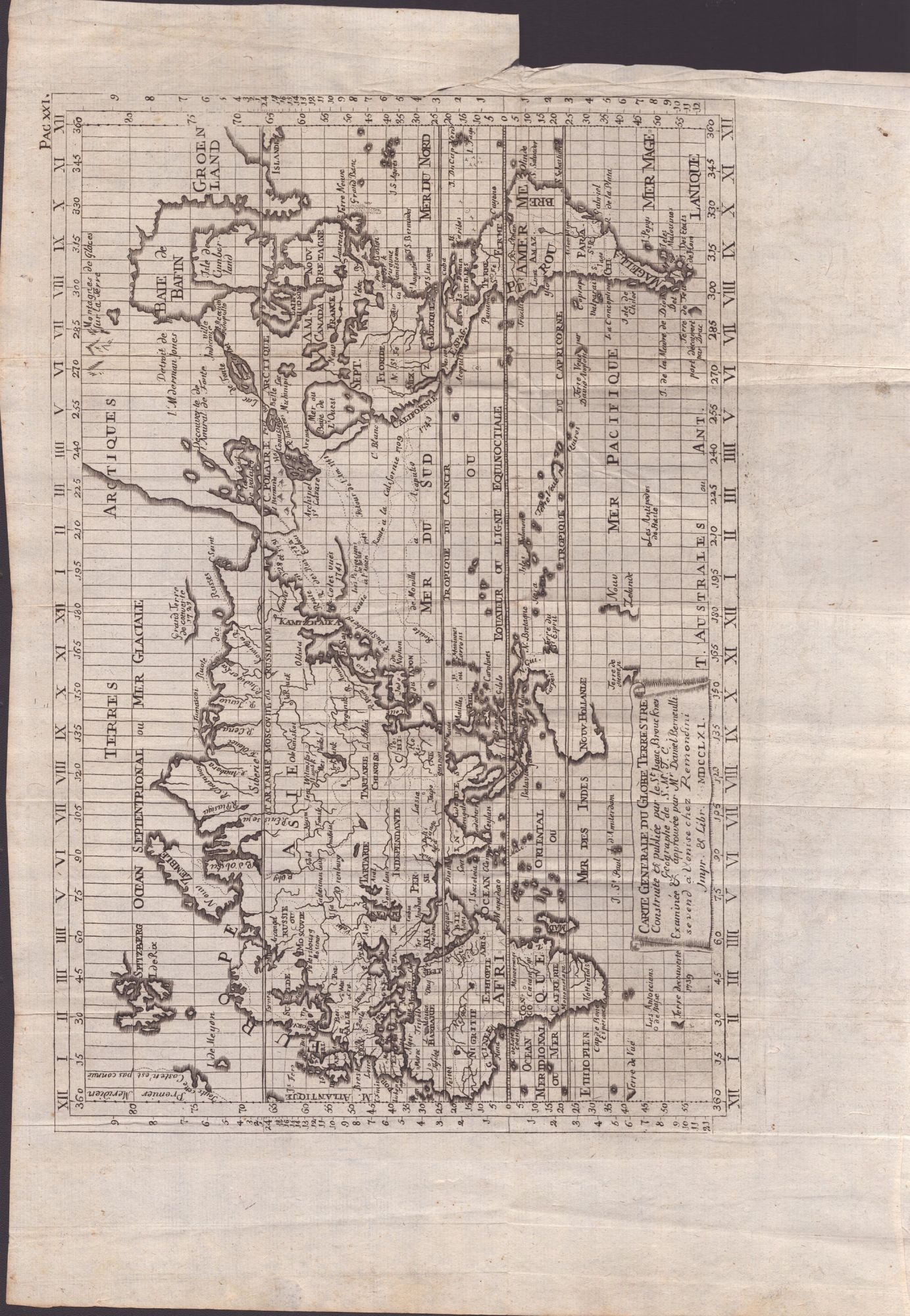acquaforte, 295 x 415 mm. Mappa del mondo di Remondini. Bella impressione su carta vergata sottile con filigrana. Traccia di pieghe orizzontali e verticali. Mancanza sul margine destro. In buono stato generale.