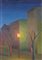 Salvo (Salvatore Mangione) Leonforte (En) 1947 La città, fine anni Novanta Olio su tela, cm. 98,5x69 Firma e titolo al verso sulla tela: Salvo / "La città". Opera in fase di archiviazione. Vendita per conto del Tribunale di Livorno.