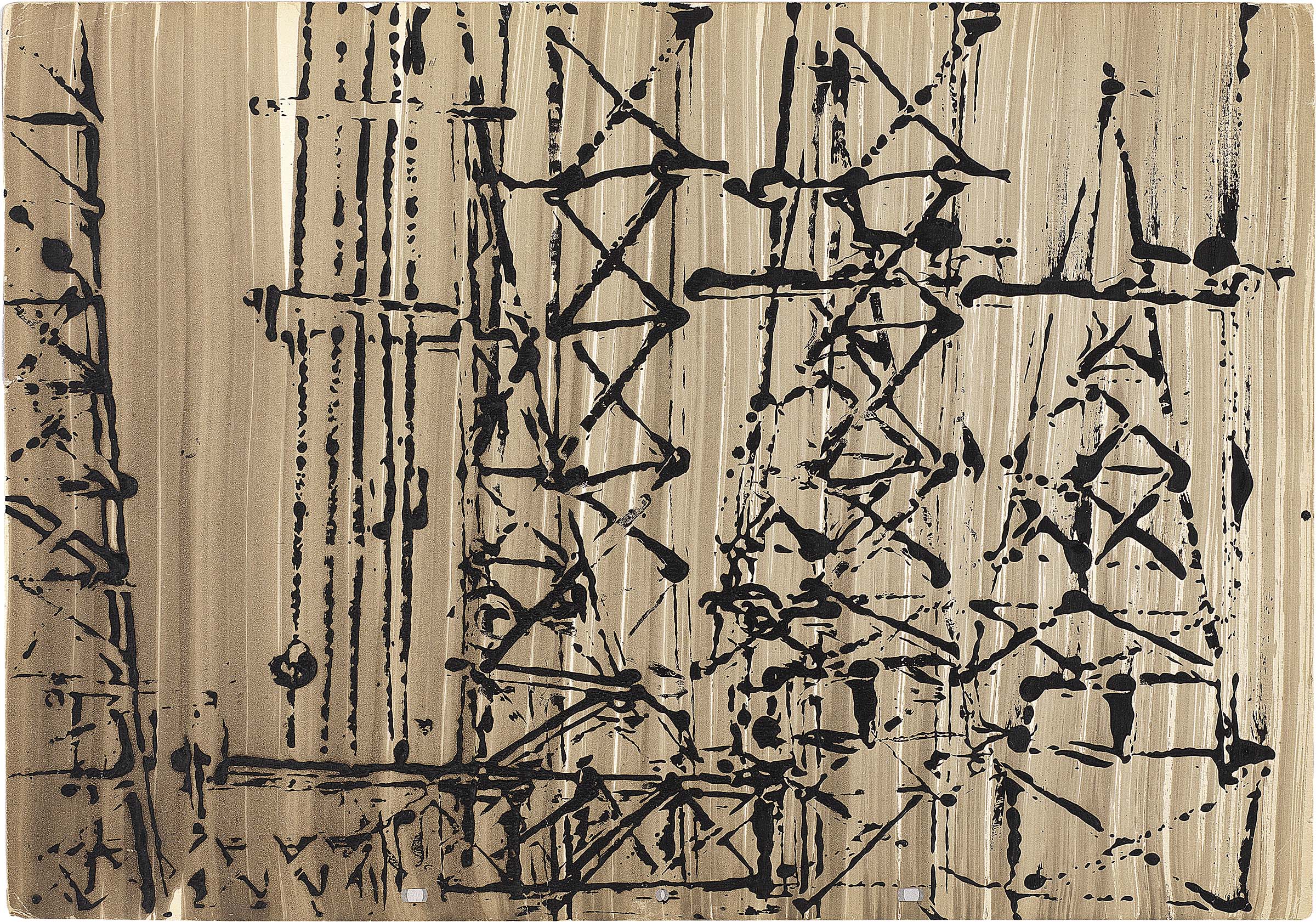 Pino Pascali Bari 1935 - Roma 1968 Tralicci, 1961 Tecnica mista su cartoncino, cm. 35x50 Al verso dichiarazione di autenticità di Sandro Lodolo. Certificato su foto di Sandro Lodolo.
