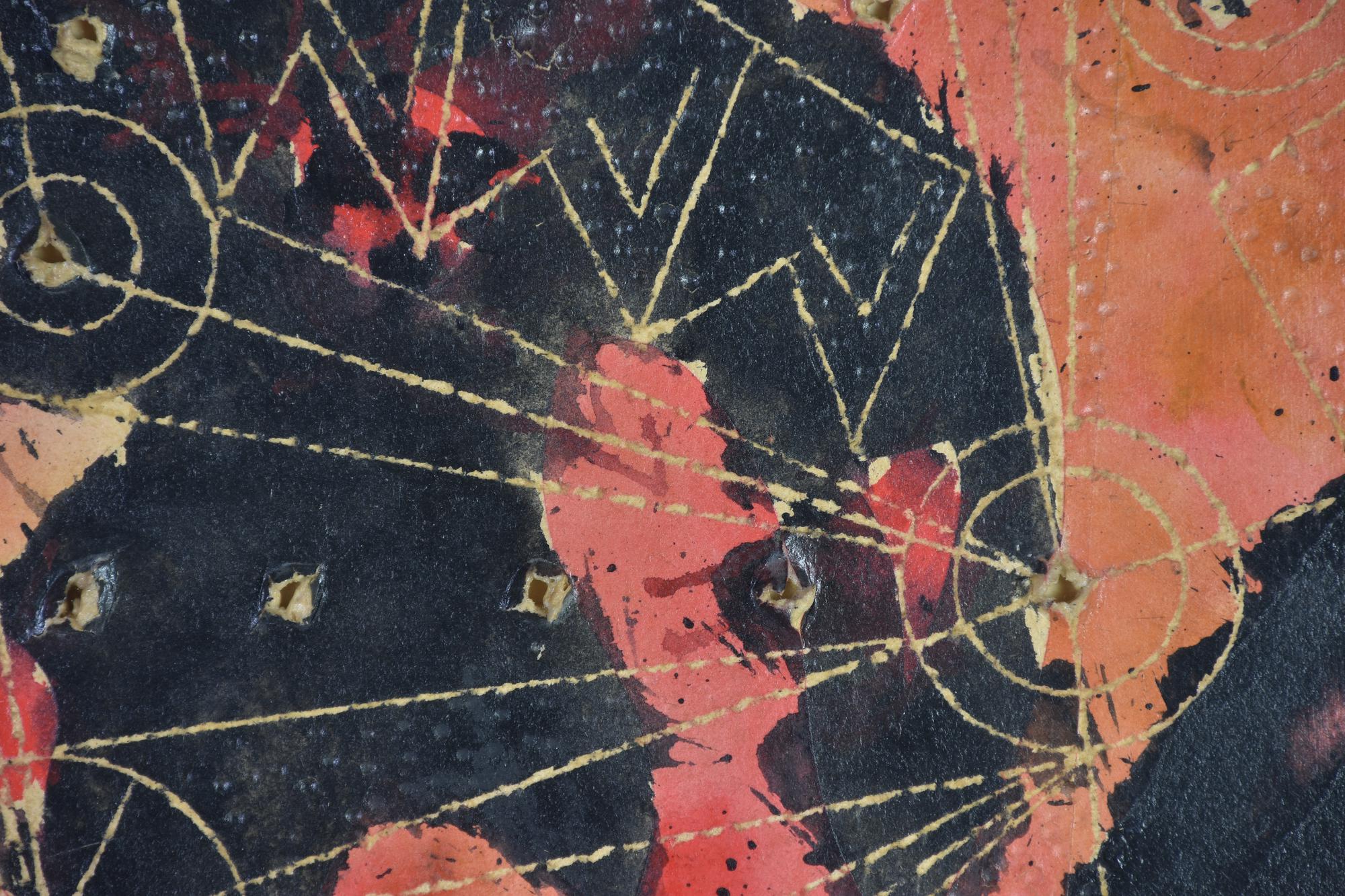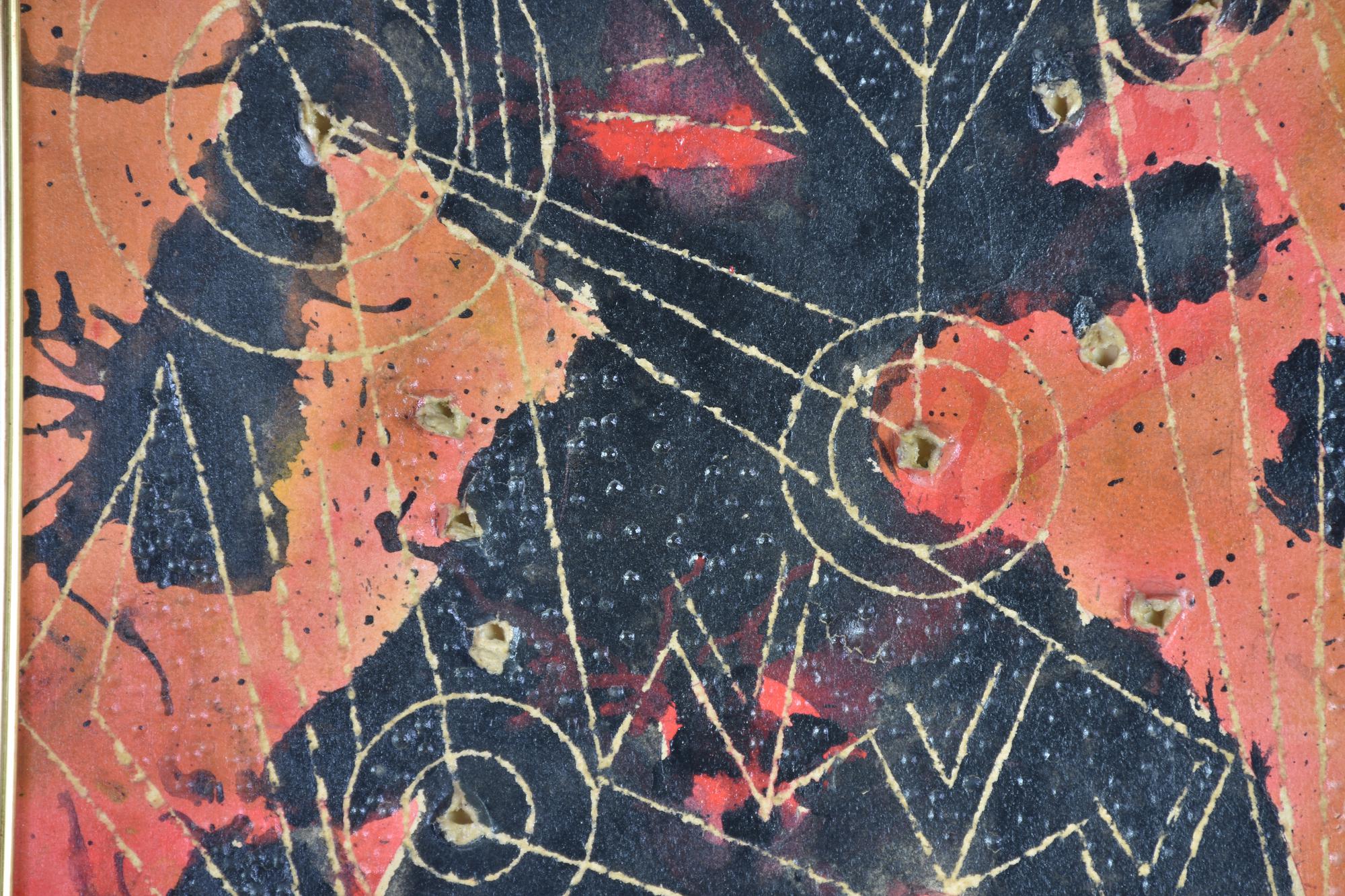 tecnica mista su cartone graffiato applicato su tavola, cm 50x40