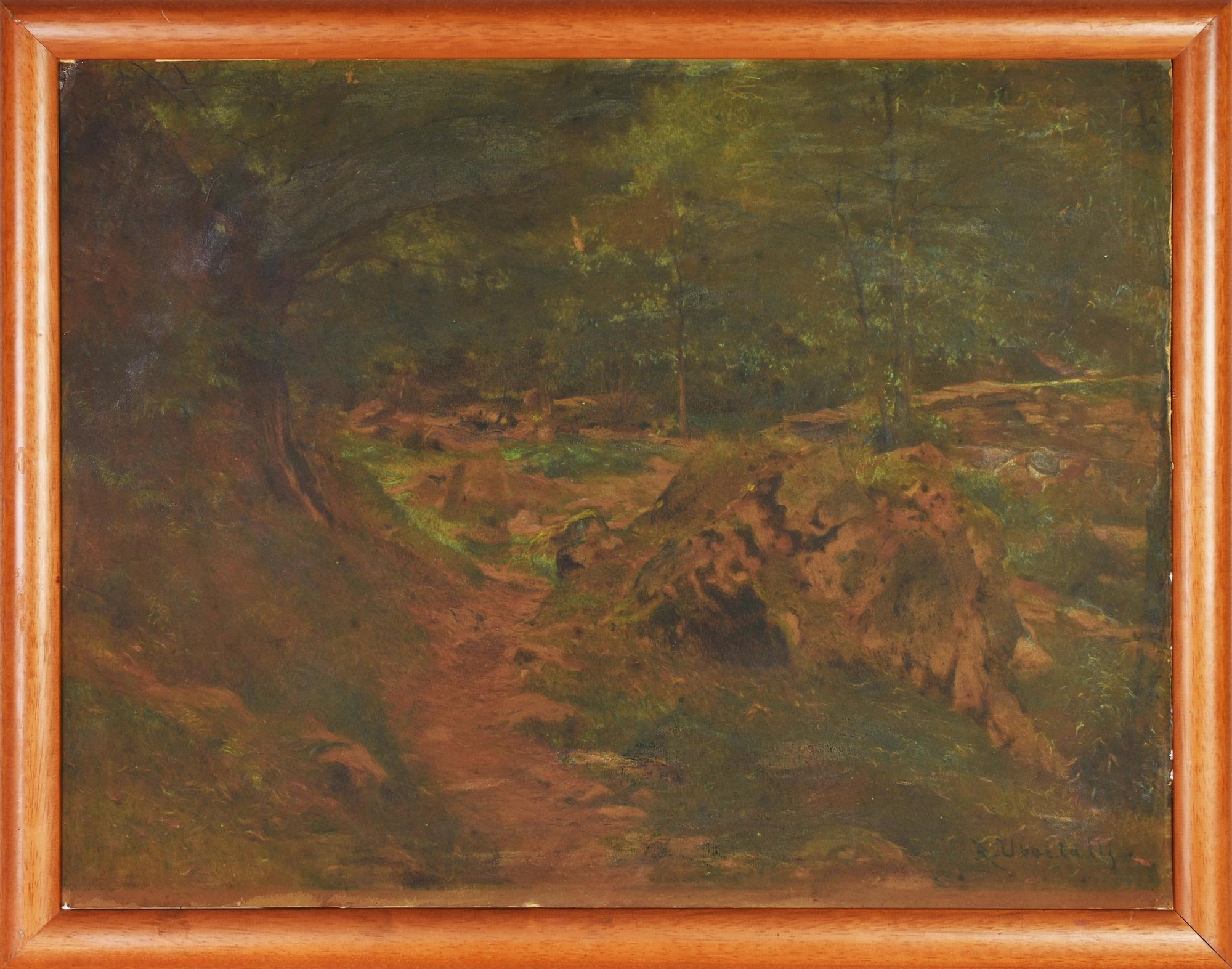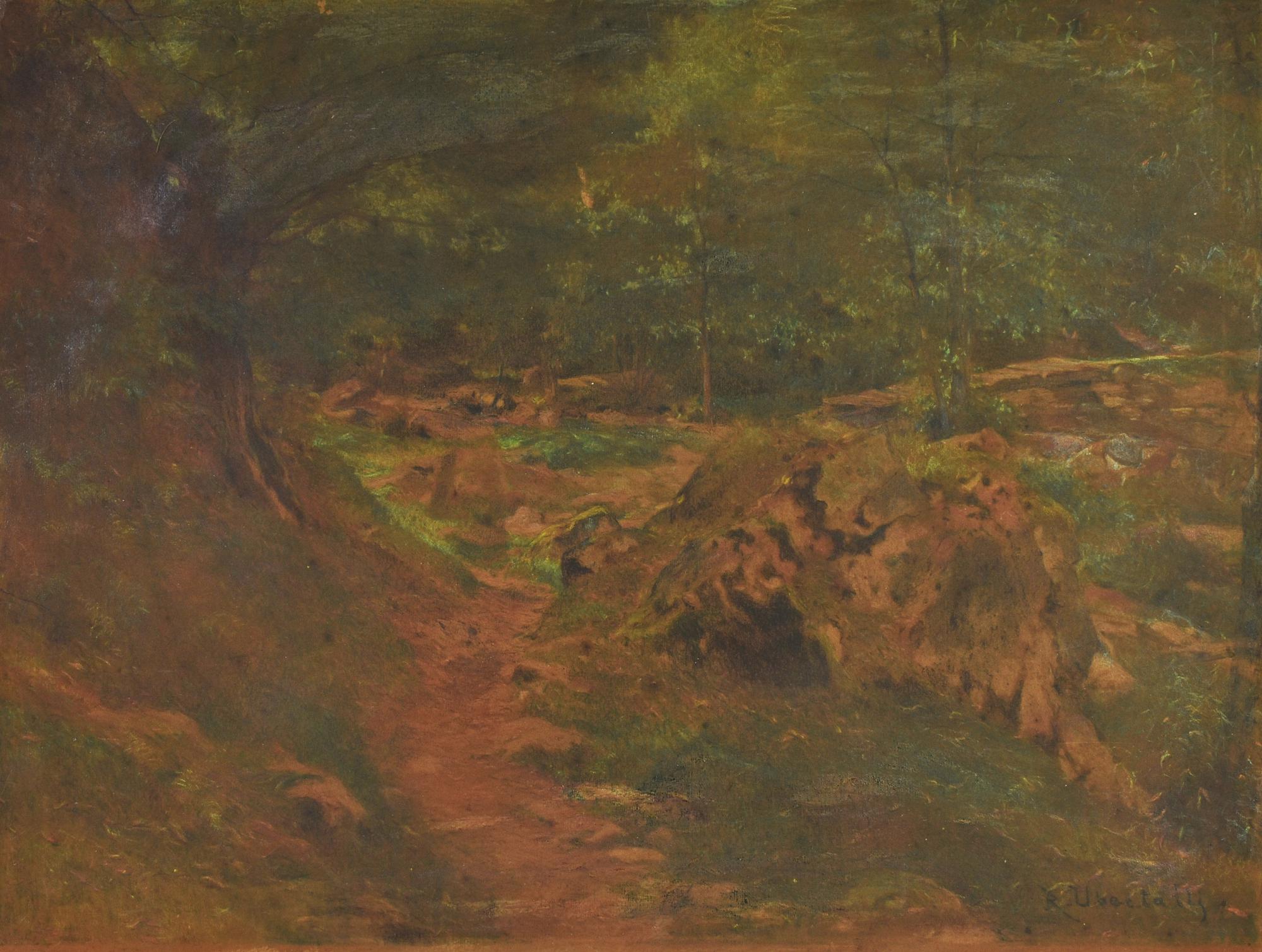 Romolo Ubertalli PAESAGGOIO BOSCHIVO ALL'IMBRUNIRE olio magro su cartone...