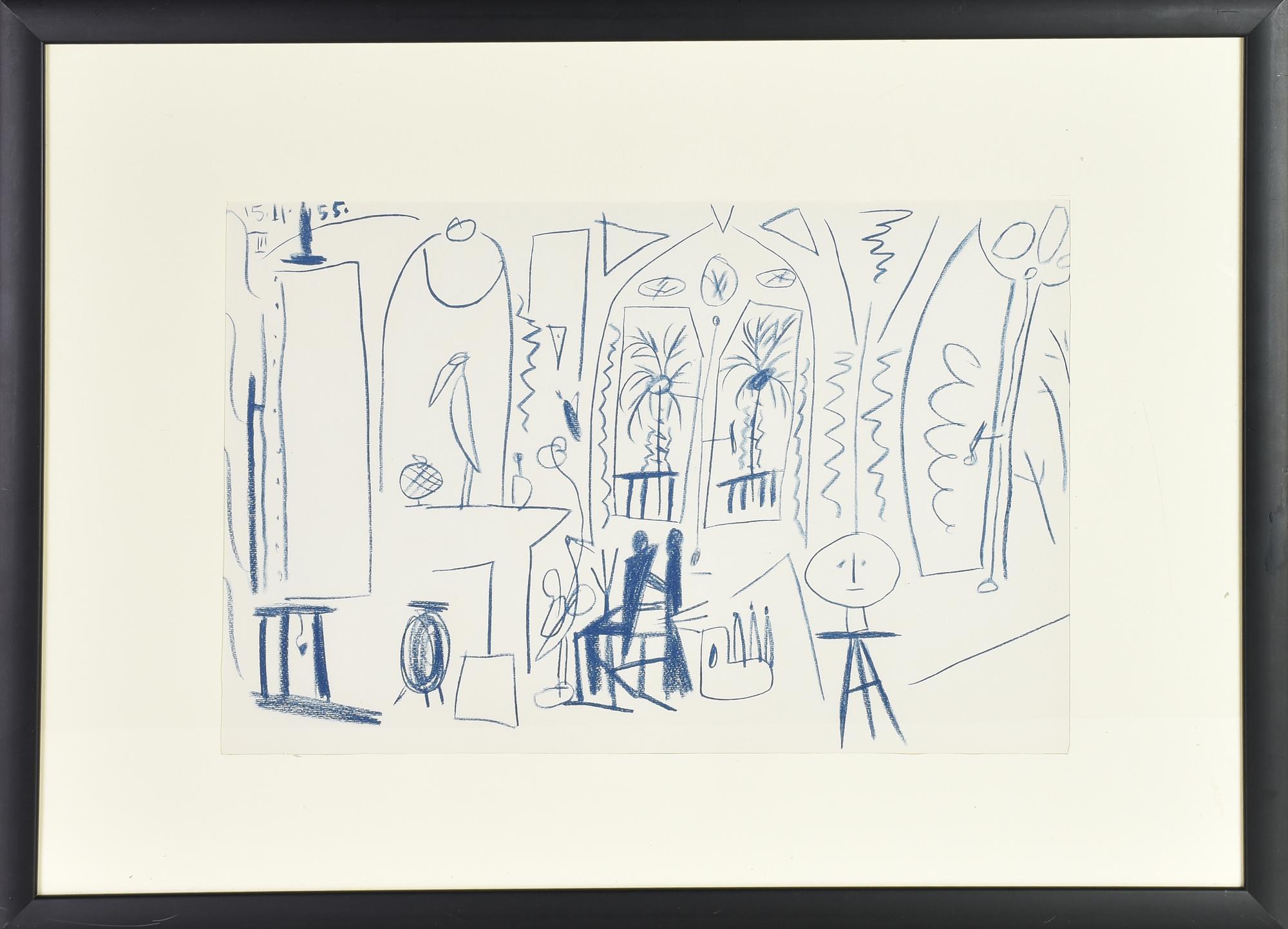 Da Pablo Picasso NELLO STUDIO fotolitografia su carta, cm 26x40 data in lastra
