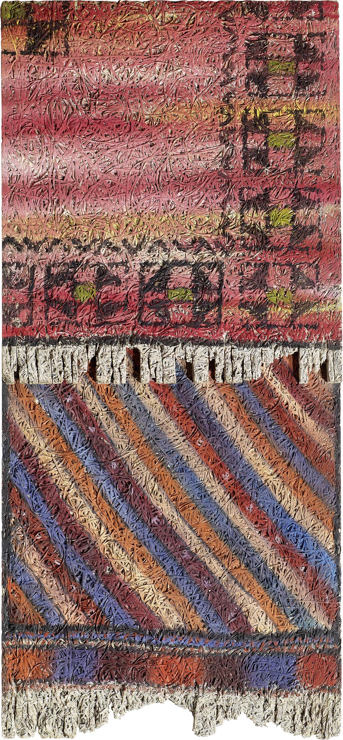 Aldo Mondino Torino 1939 - 2005 Tappeti stesi Olio su pannelli di eraclit, cm. 134x60