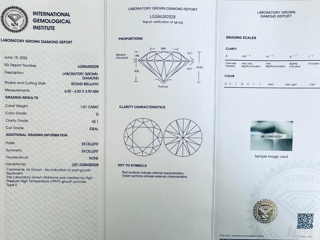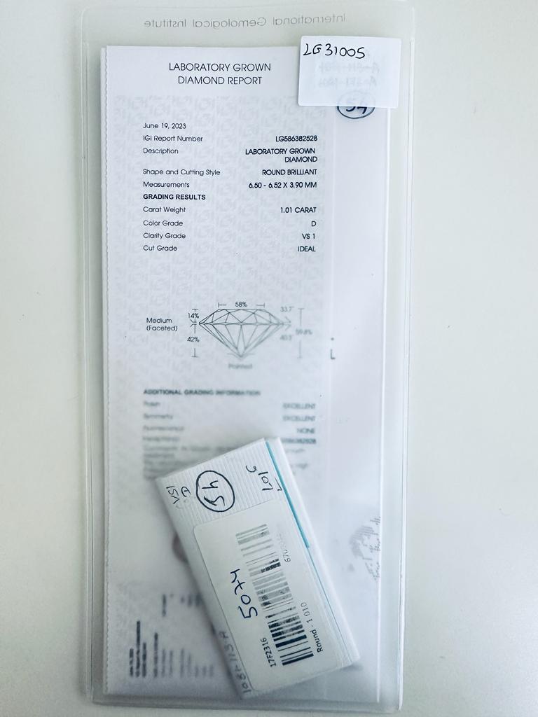 DIAMANTE LAB GROWN 1,01 CT D - S1 - IGI - INCISO AL LASER - LG31005