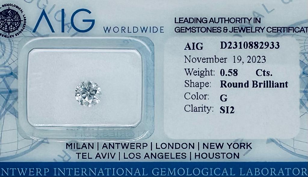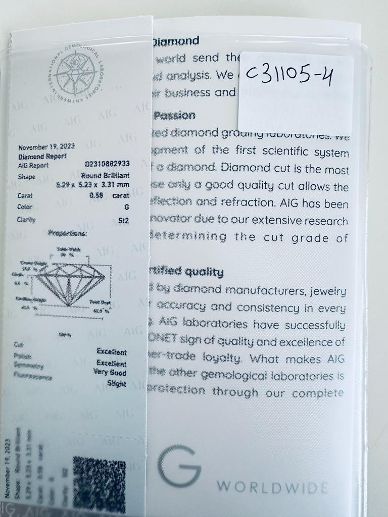 DIAMANTE 0,58 CARATI COLORE G - PUREZZA SI2 - TAGLIO BRILLANTE - C31105-4