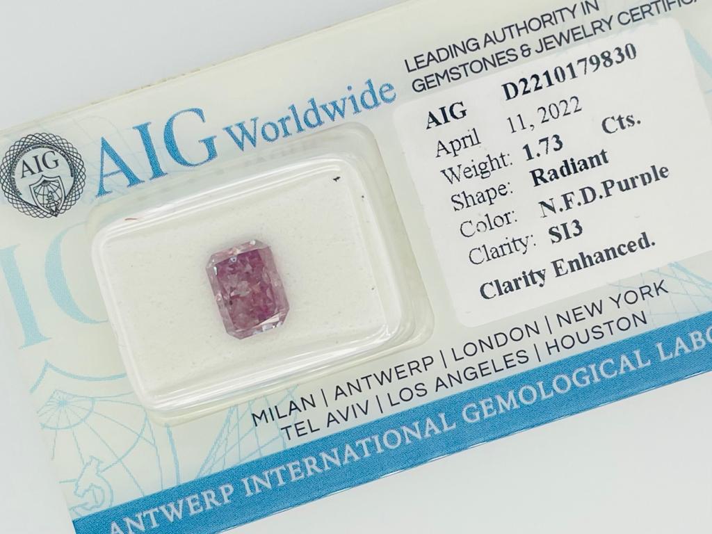 DIAMANTE NATURAL POLISHED 1,73 CARATI COLORE FANCY VIOLA INTENSO - PUREZZA SI3 - TAGLIO RADIANTE - F20410