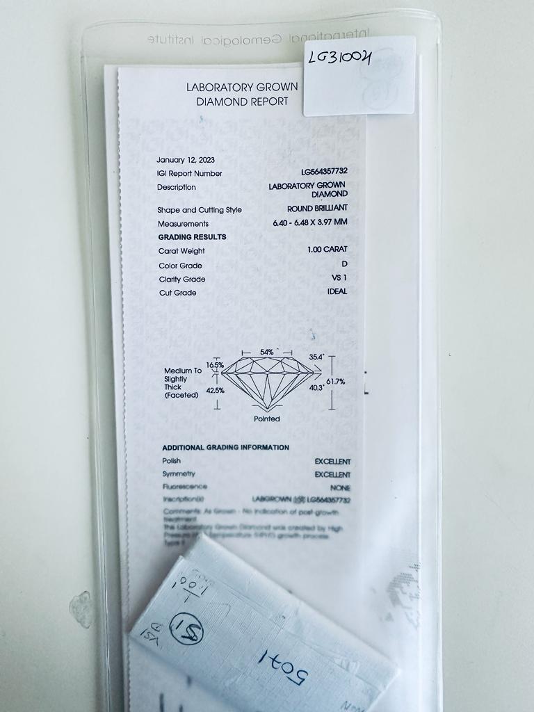 DIAMANTE LAB GROWN 1 CT D - S1 - IGI - INCISO AL LASER - LG31004