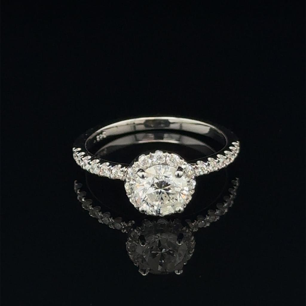 ANELLO IN ORO BIANCO 14K 2.75 GR CON DIAMANTE DA 1.01 CARATI COLORE G-H / PUREZZA SI2+ BRILLANTI PER 0.27 CARATI COLORE F PUREZZA VS2 TAGLIA 7 CERTIFICATO AIG - RNG30310
