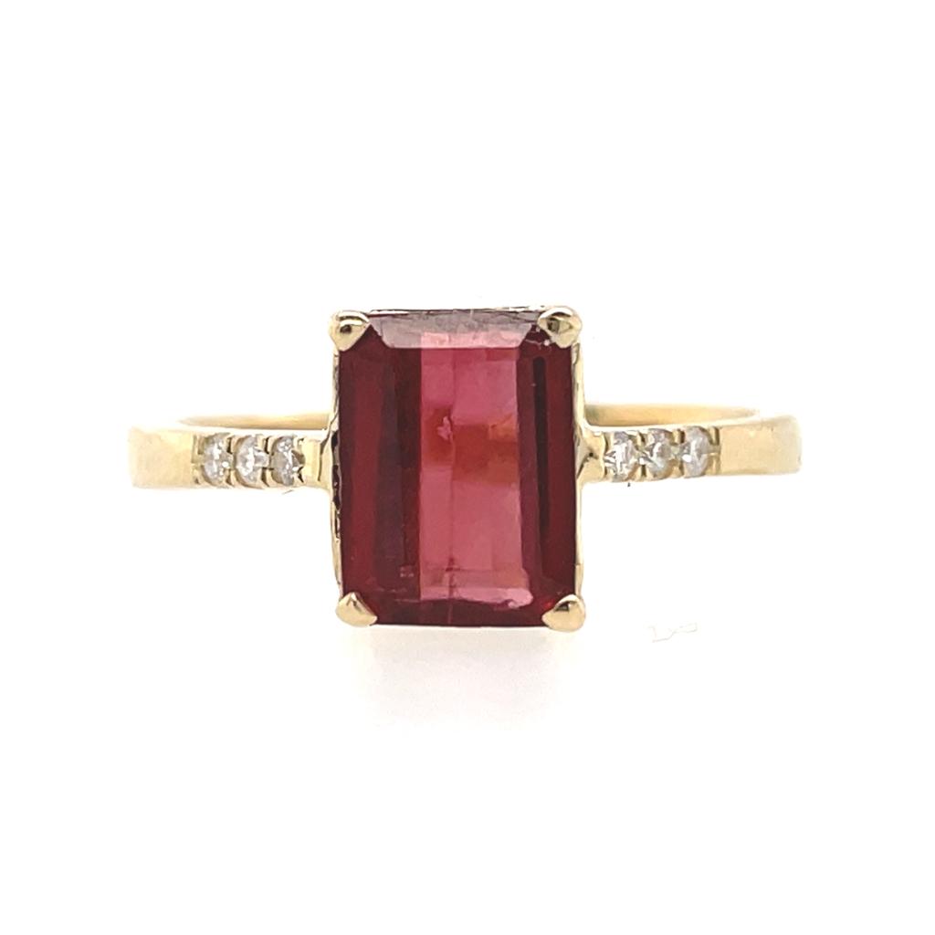 ANELLO IN ORO GIALLO 14K 2.45 GR GRANATO SINTETICO E CON DIAMANTI PER 1.81 + 0.06 CARATI COLORE D-F/ PUREZZA VS1-SI1 TAGLIA:6.5 - CERTIFICATO AIG - RNG11103