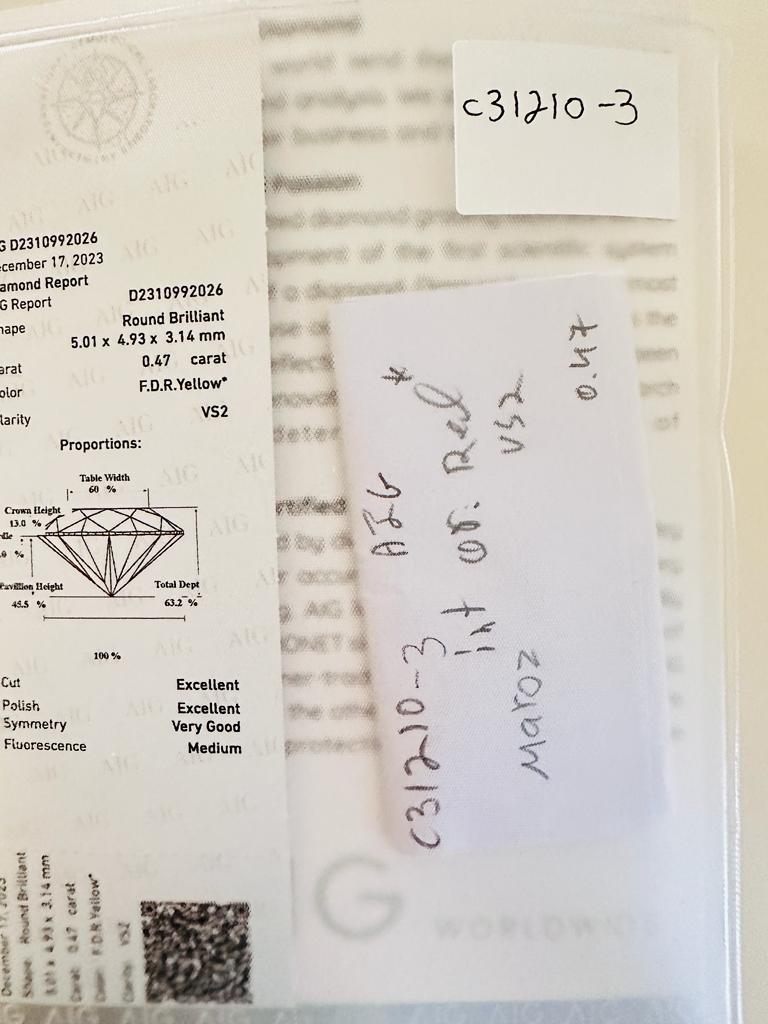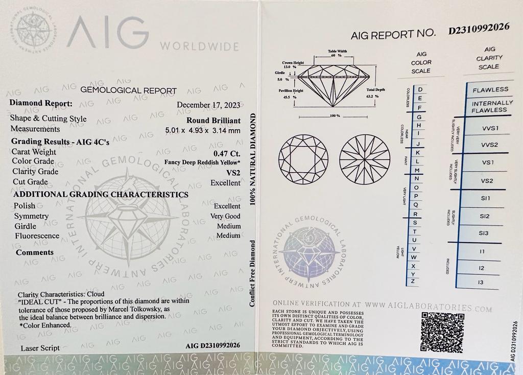 DIAMANTE COLORE ESALTATO 0,47 CARATI COLORE ROSSASTRO SCURO GIALLO* - PUREZZA VS2 - TAGLIO BRILLANTE - CERTIFICATO AIG - C31210-3