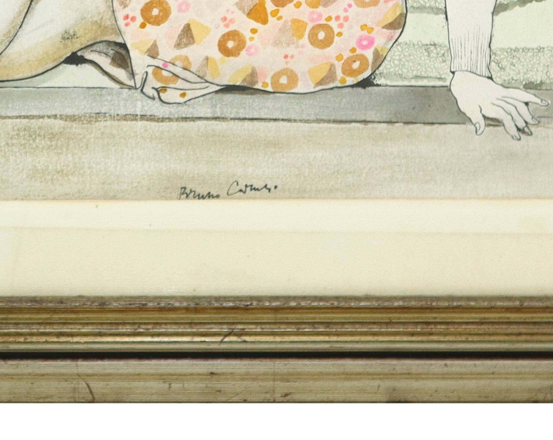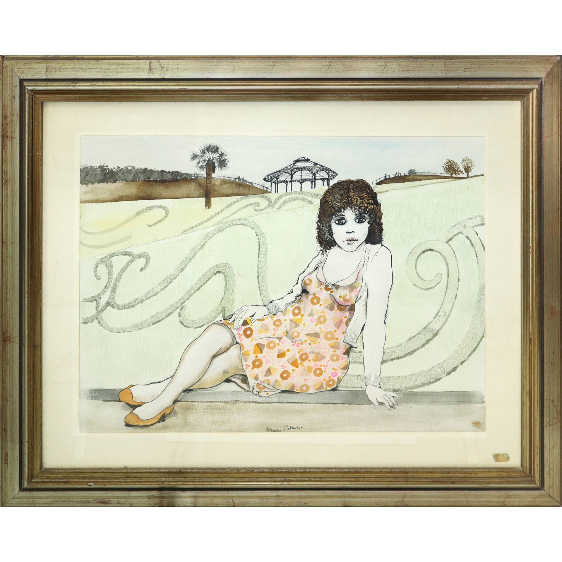 Bruno Caruso (Palermo 1927-Roma 2018) - Ragazza seduta alla Villa Bellini di Catania cm 58x73 in cornice cm 69x86 Disegno acquerellato Firmato in basso al centro