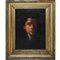 Viso di donna, orecchini a boccolette, nineteen° Secolo H cm 46x34,5 - in cornice H cm 56x45 Olio su tela In cornice dorata.