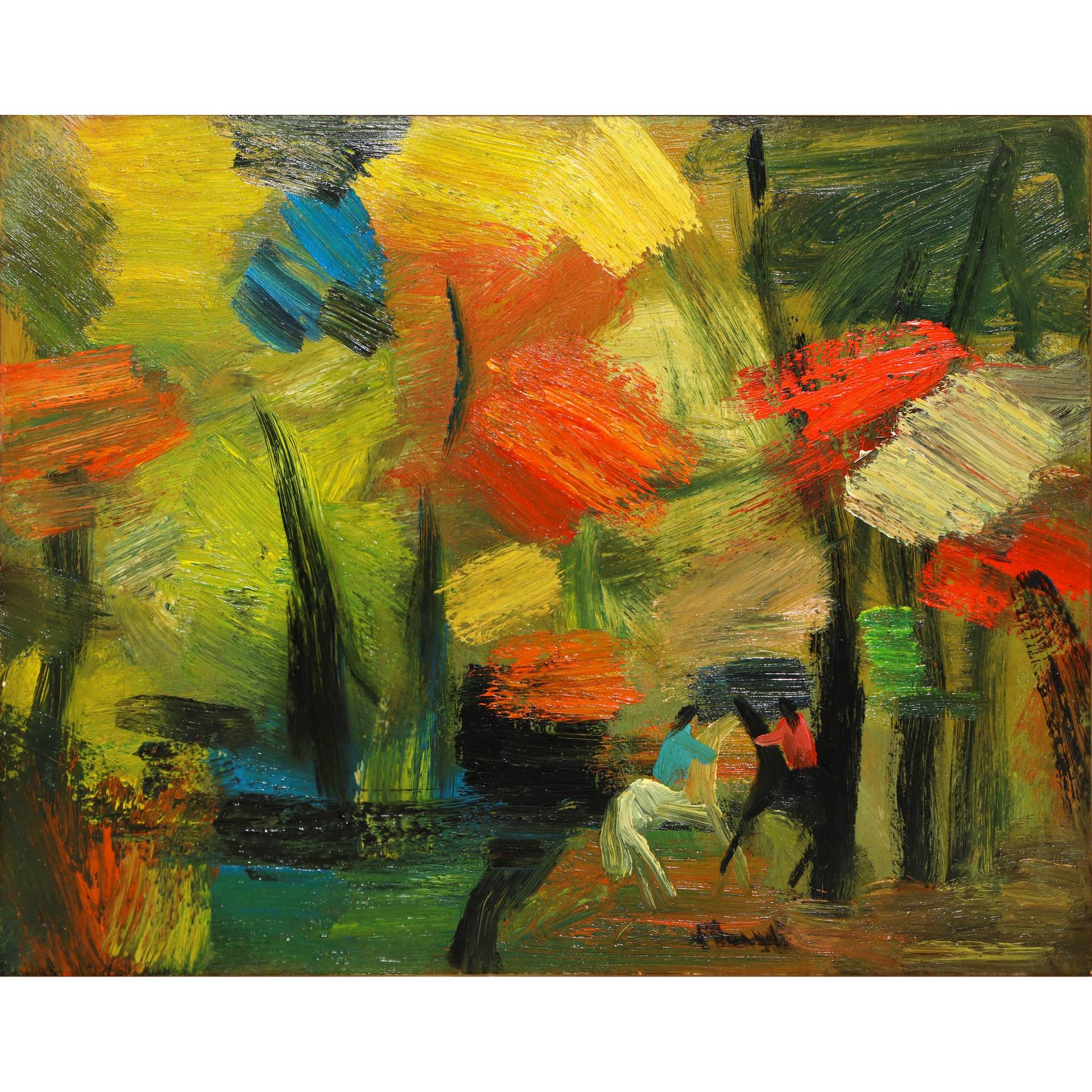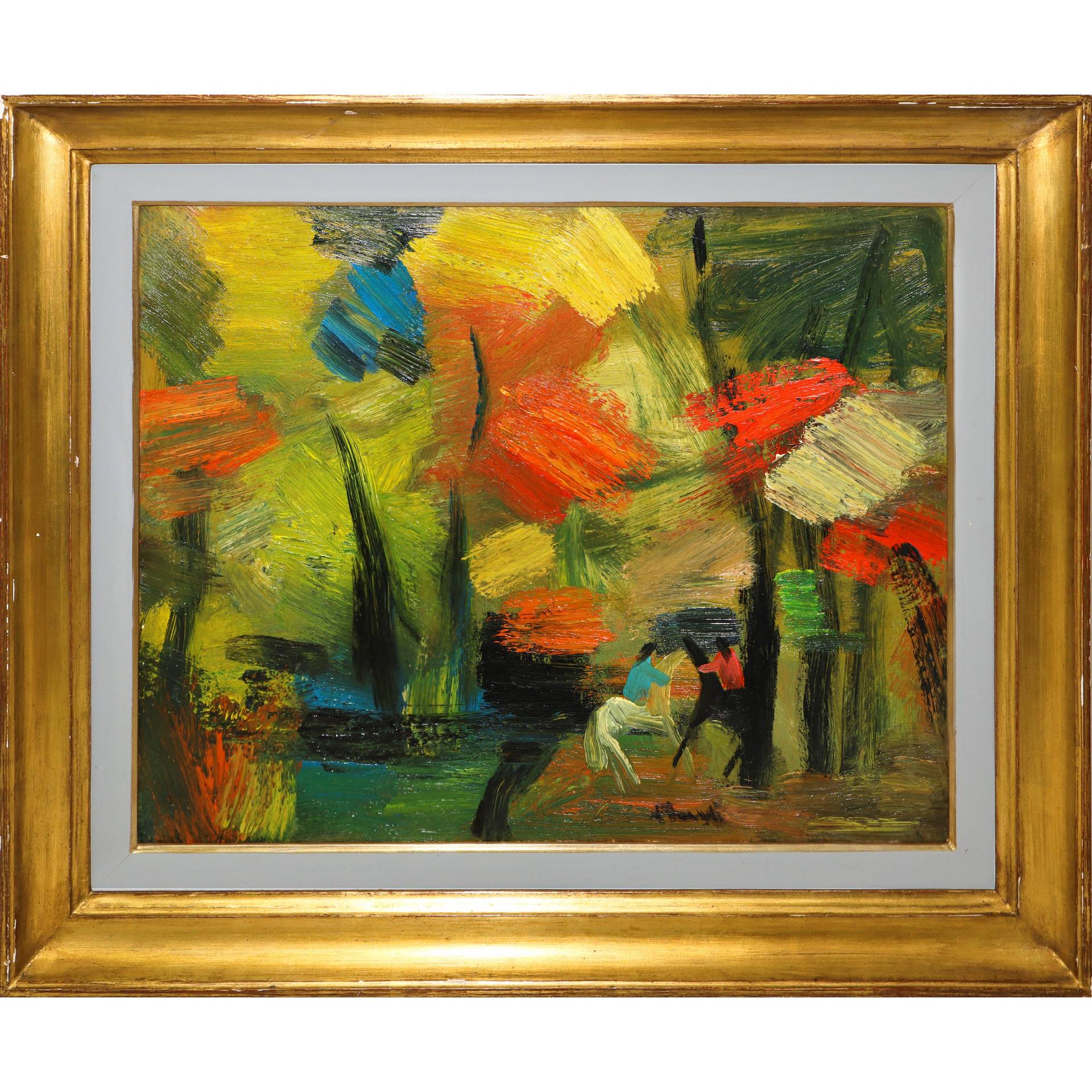 Gian Rodolfo D'Accardi (Palermo 1906-Varese 1993) - Personaggi nel bosco 45x55 in cornice 60x70 Olio su masonite Firmato sul fronte in basso a destra