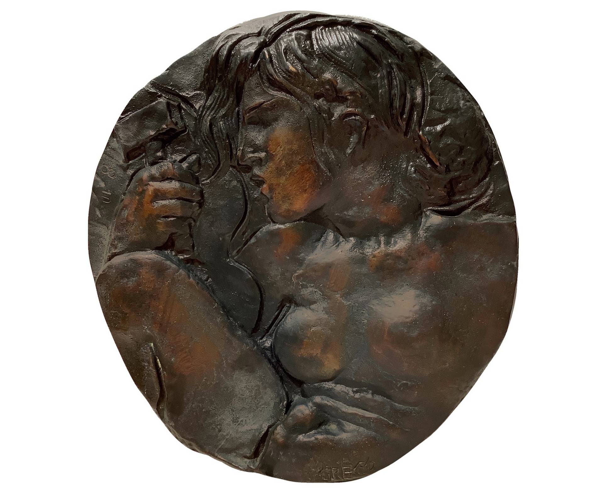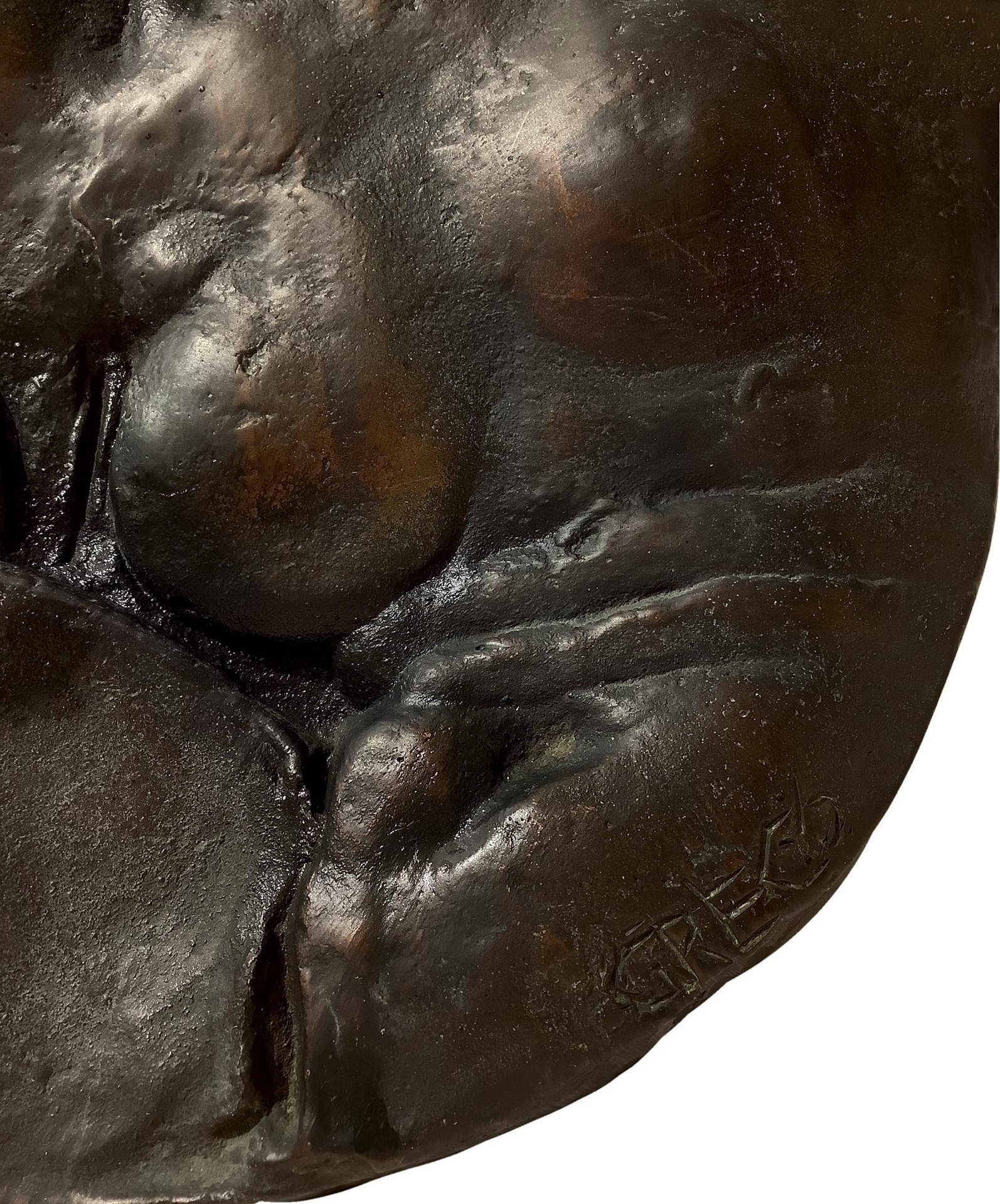 Emilio Greco (Catania 1913-Roma 1995) - Nudo di donna, 20° Secolo Diametro cm28 Bronzo Firmato. Esemplare 8 su 10. Da ritenere opera unica. Il riconoscimento internazionale per l’artista si ebbe alla Biennale di Venezia del 1956 con il Gran Premio per la Scultura, i suoi disegni e le sue sculture rispecchiano un ideale di bellezza che attraverso forme tornite, allungate e ben fornite si riportano ad un manierismo arcaico della Scuola di Fontainebleau. Suo punto di riferimento può considerarsi lo scultore Pericle Fazzini.Nella sua grafica, perfetta sintesi formale, netta, elegante e decisa ritroviamo l’essenza di tutto ciò che viene realizzato nelle forme plastiche, piene del bronzo, il corpo della donna costituisce la sua costante ispirazione, in tutte le sue figurazioni.La sua sapienza creativa, comunque si applica a numerose altre opere, quali il monumento a Pinocchio a Collodi, le porte del Duomo di Orvieto, e i Bassorilievi per la chiesa di S.G. Battista a Campi Bisanzio. Presente in numerosi musei: Tate Gallery – Londra; Hermitage – San Pietroburgo; Museo Puskin – Mosca; Hakone Open-Air Museum- Giappone; Musei Vaticani – Roma.