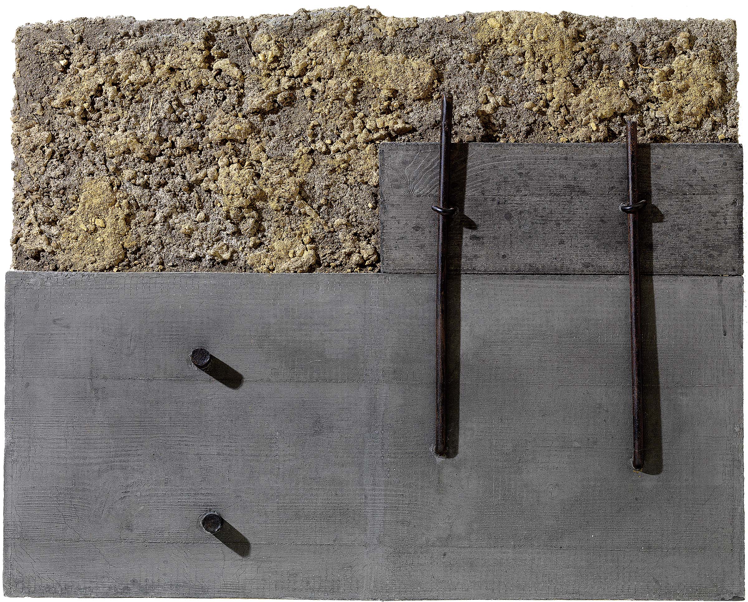 Giuseppe Uncini Fabriano (An) 1929 - Trevi (Pg) 2008 Artificio N. 2, 2007 Cemento, ferro e terre, cm. 78x96x9 Firma, data e titolo la verso: Uncini 07 / Artificio N. 2. Foto autenticata dall'artista in data 13/3/08, con etichetta Archivio Uncini, Bergamo, con n. 07-036.