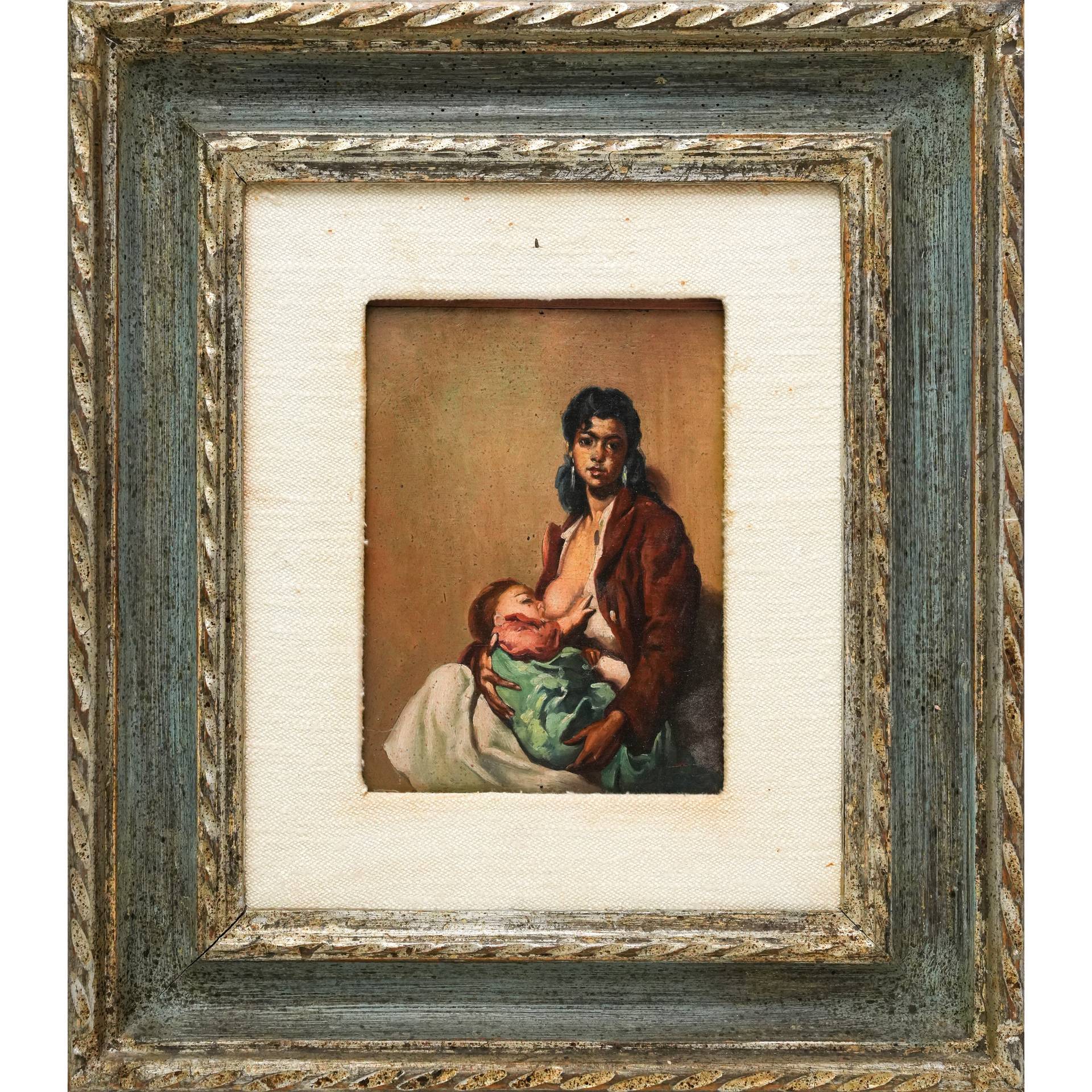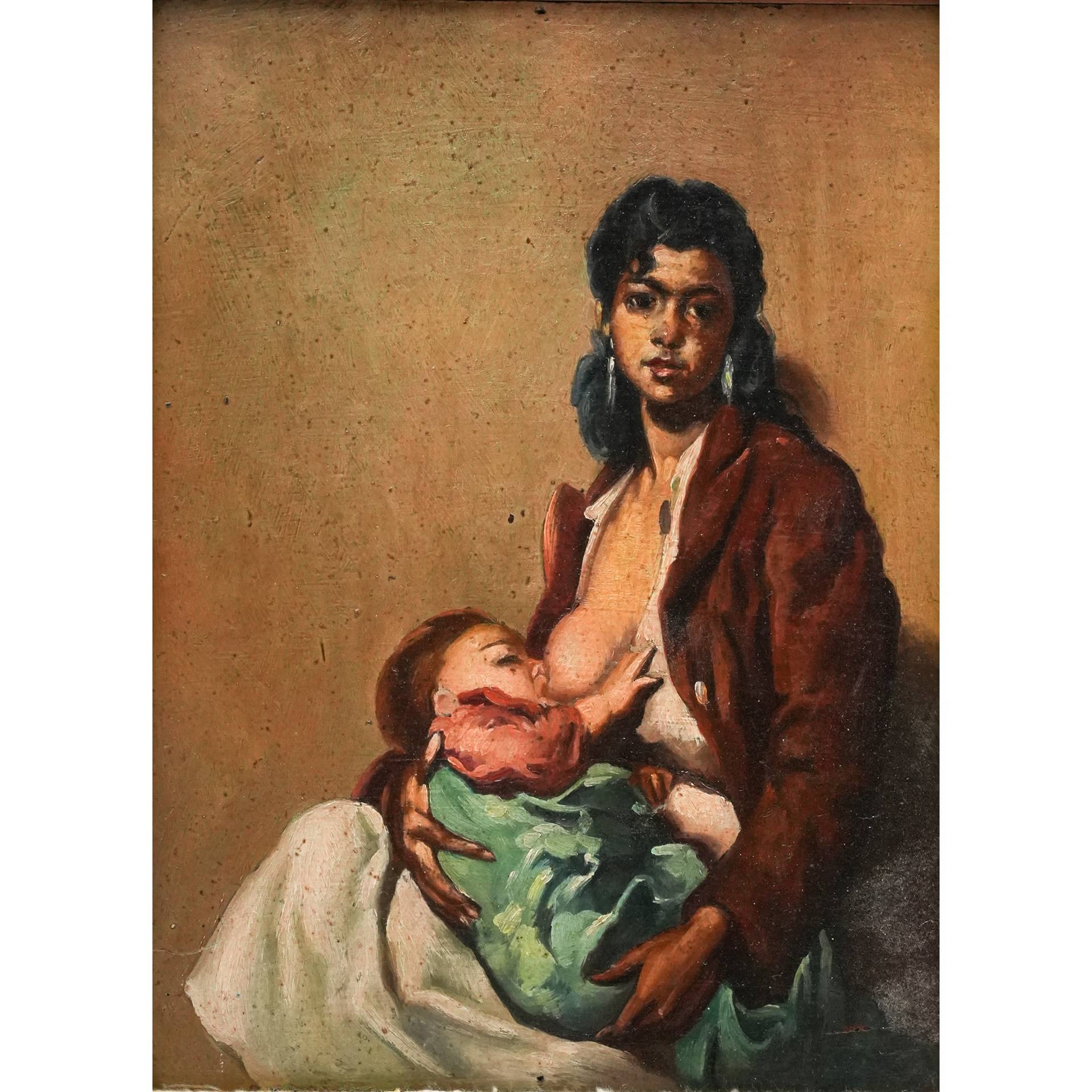 Maternita', Primi 20° Secolo H cm 19,5x15,5 - in cornice H cm 40,5x36 olio su tavola