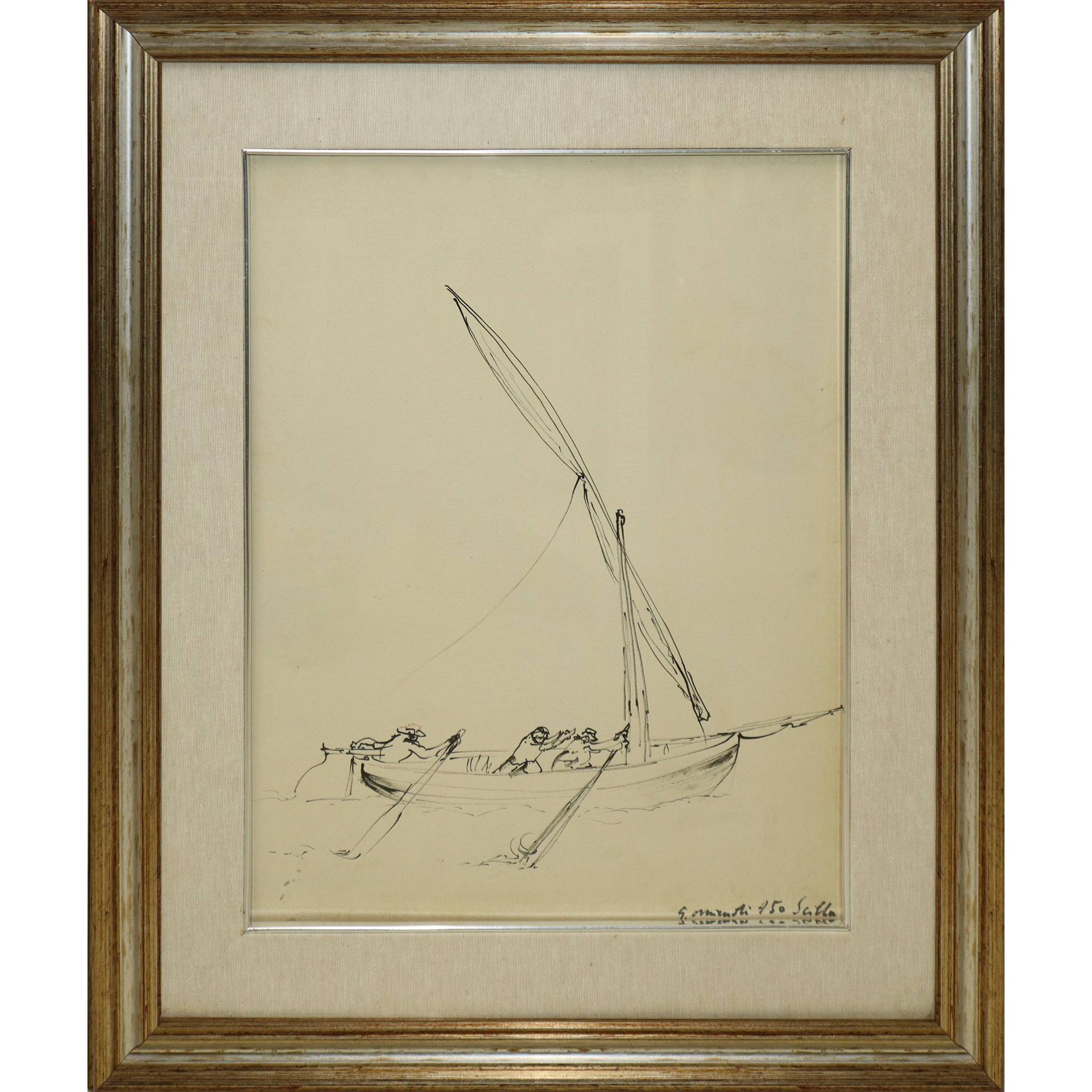 Giovanni Omiccioli (Roma 1901-1975) - Scilla, 1950 H cm 49x38,5 - in cornice H cm 64x52,5 china su carta applicata a tela Firmato, datato e titolato in basso a destra. Certificato su fotografia Fondazione Giovanni Omiccioli, Foto d'archivio n. 530 bis. Al retro timbro Galleria d'Arte Moderna Mosaico Messina.