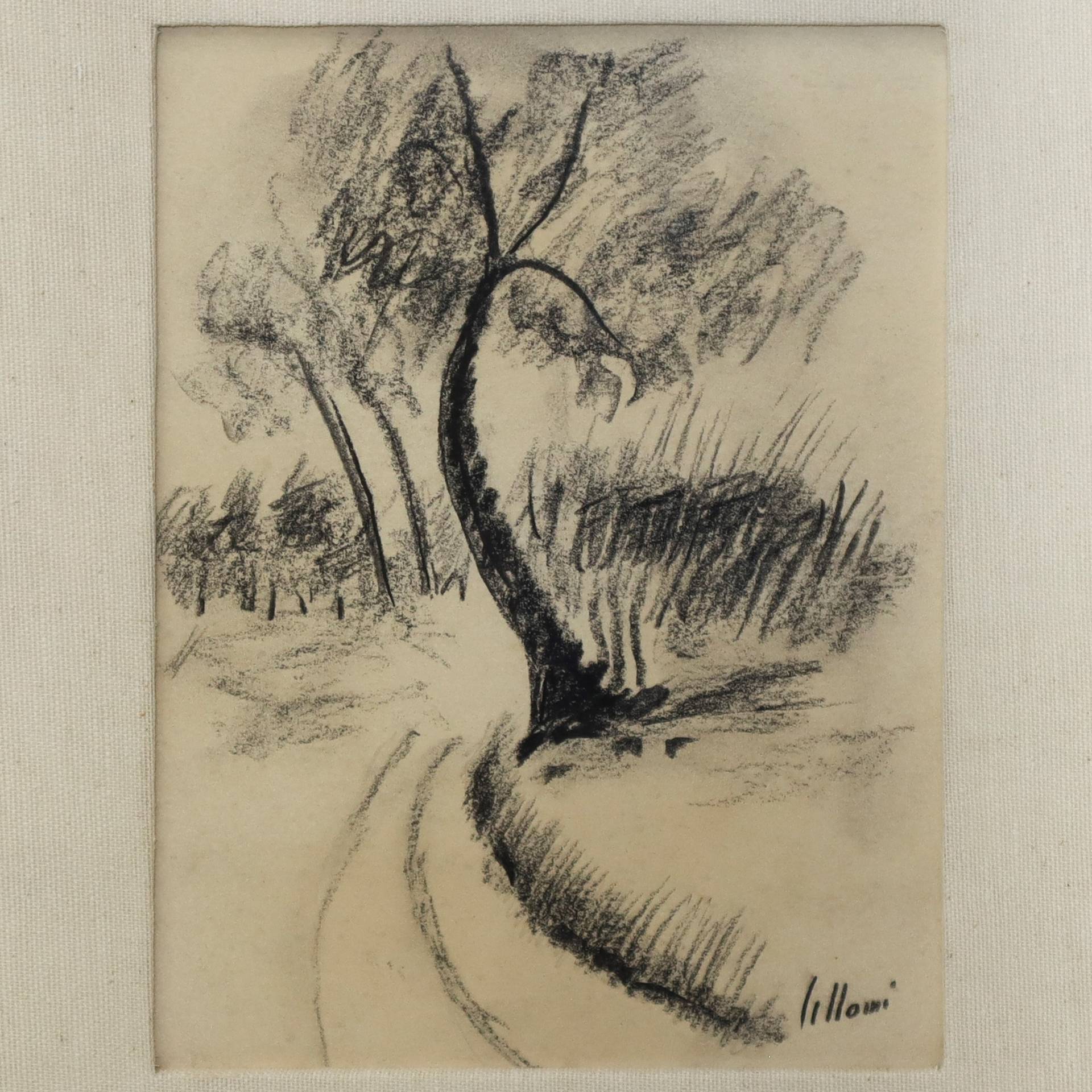 Umberto Lilloni (Milano 1898-Milano 1980) - Strada Alberata cm 26x20, in cornice cm 40x34 Carboncino su cartone