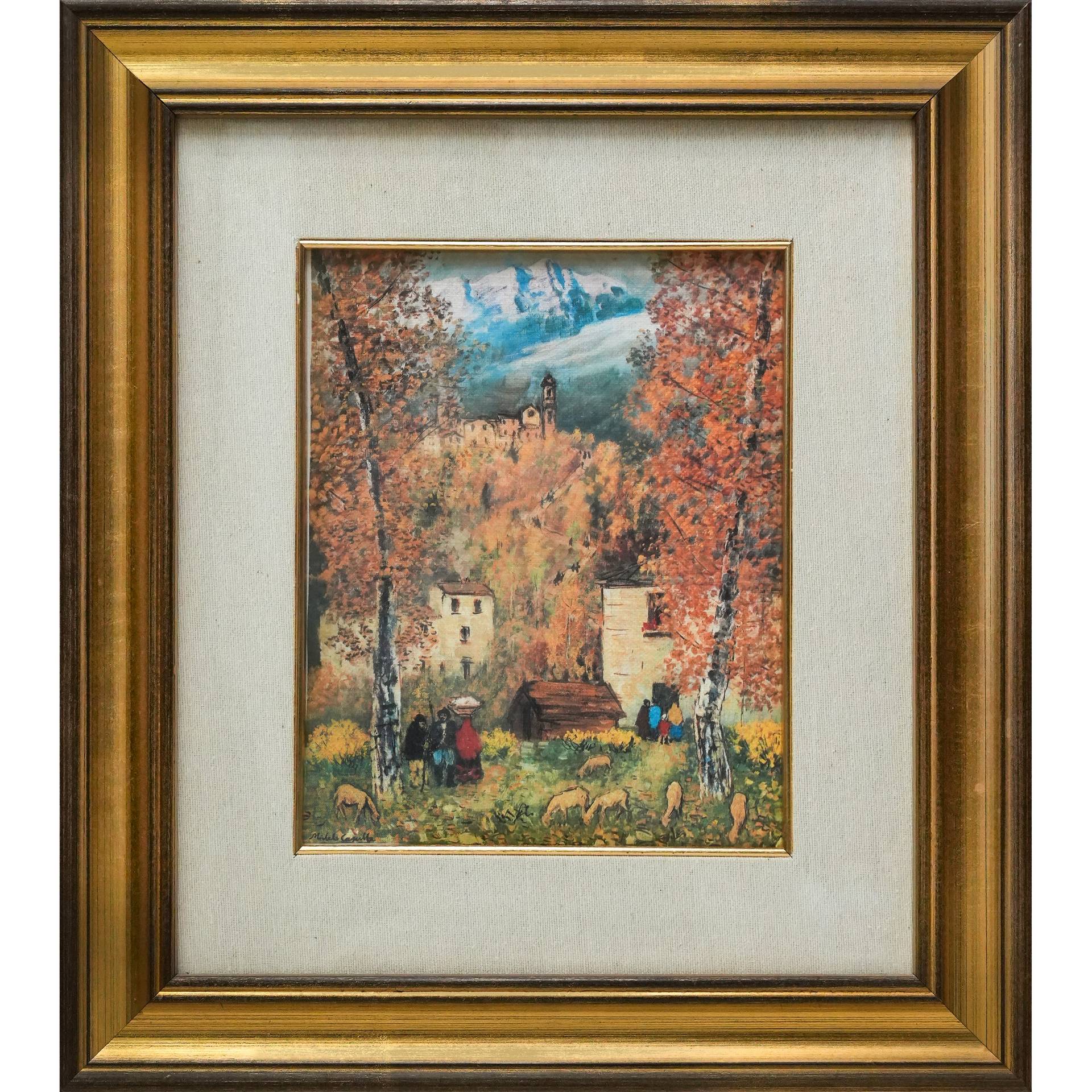 Michele Cascella (Ortona 1892-Milano 1989) - Autunno H cm 21,5x26,5 - in cornice H cm 46x41 Cromolitografia Firmato al fronte in basso a sinistra. Certificato di garanzia al retro di Arteviva S.r.l. L'opera è realizzata su tela in 499 esemplari.