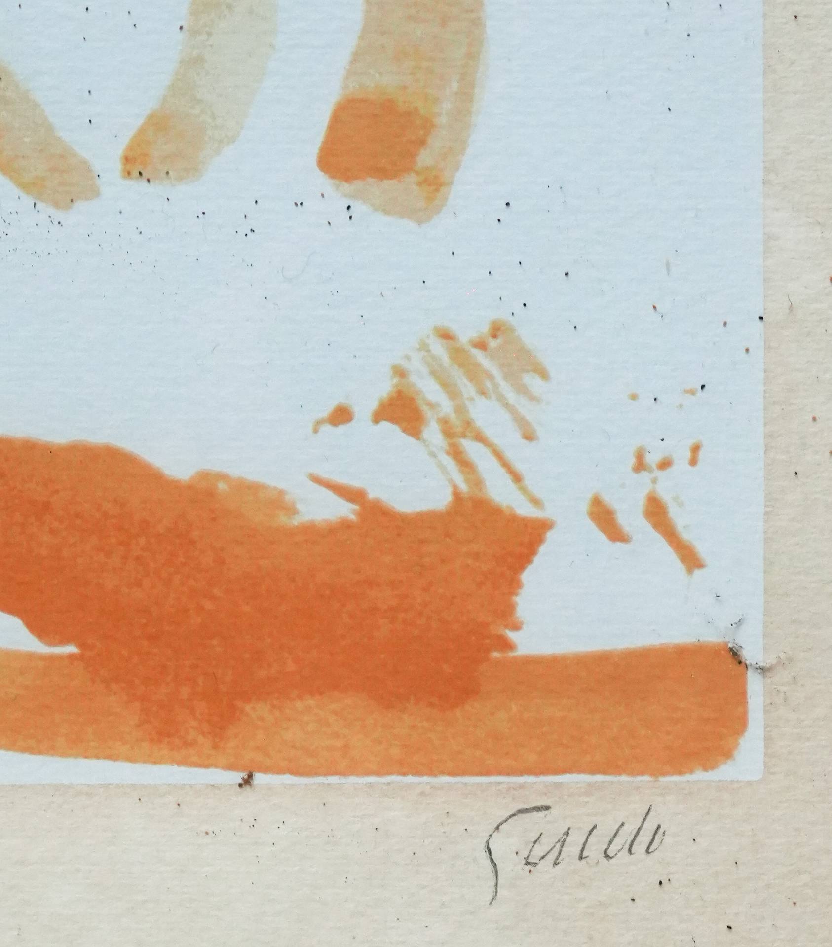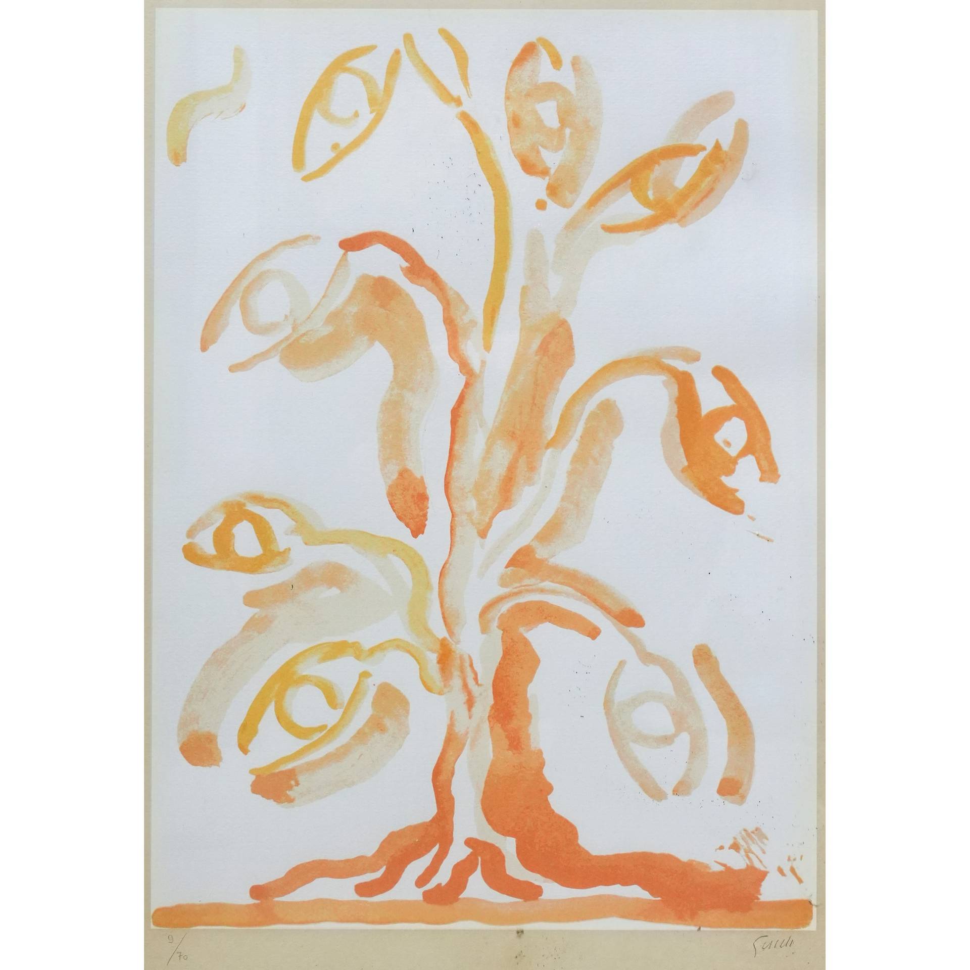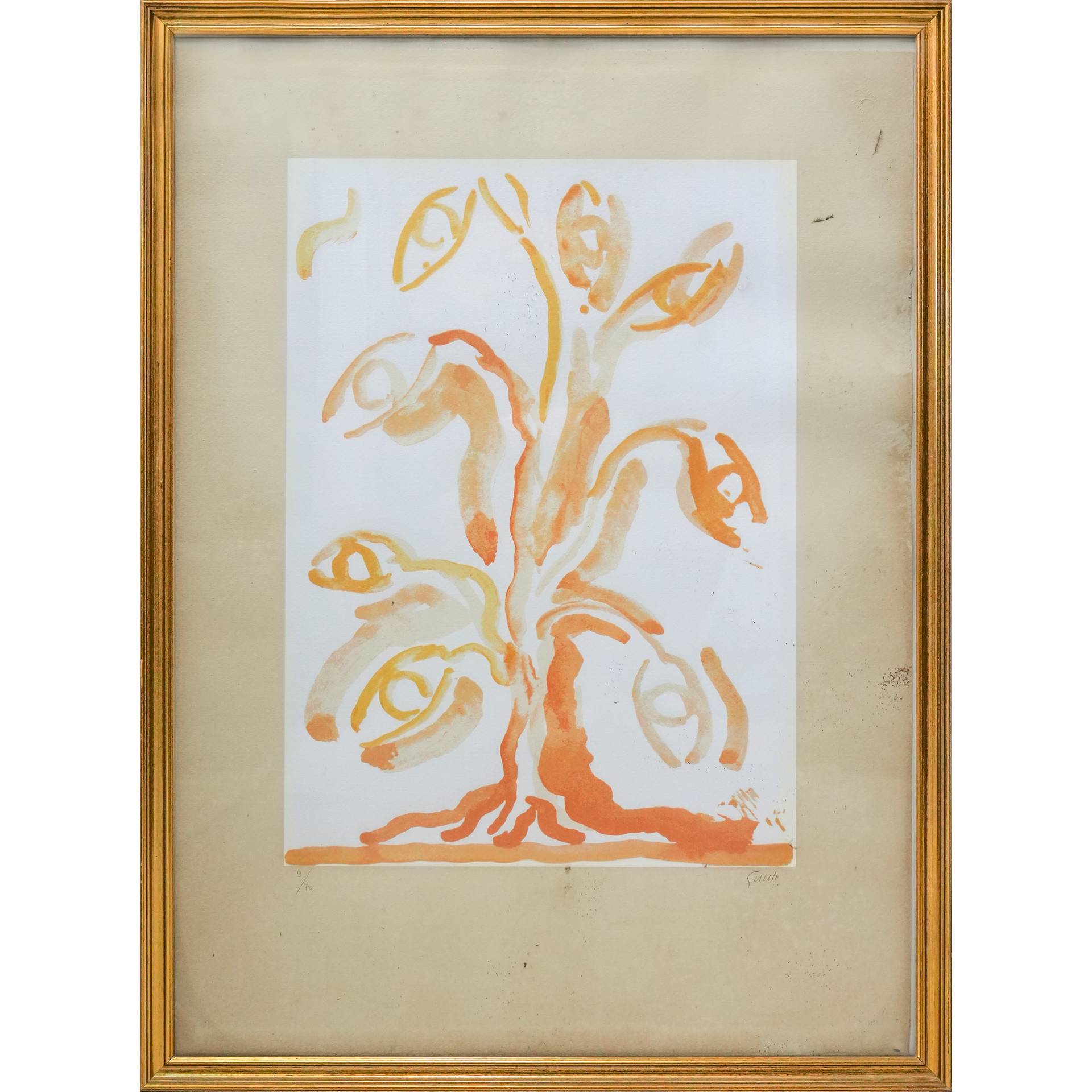 Virgilio Guidi (Roma 1891-Venezia 1984) - Albero giallo H cm 48x33,2 - in cornice H cm 73,5x53,5 litografia In basso 9/70Firma in basso a destra