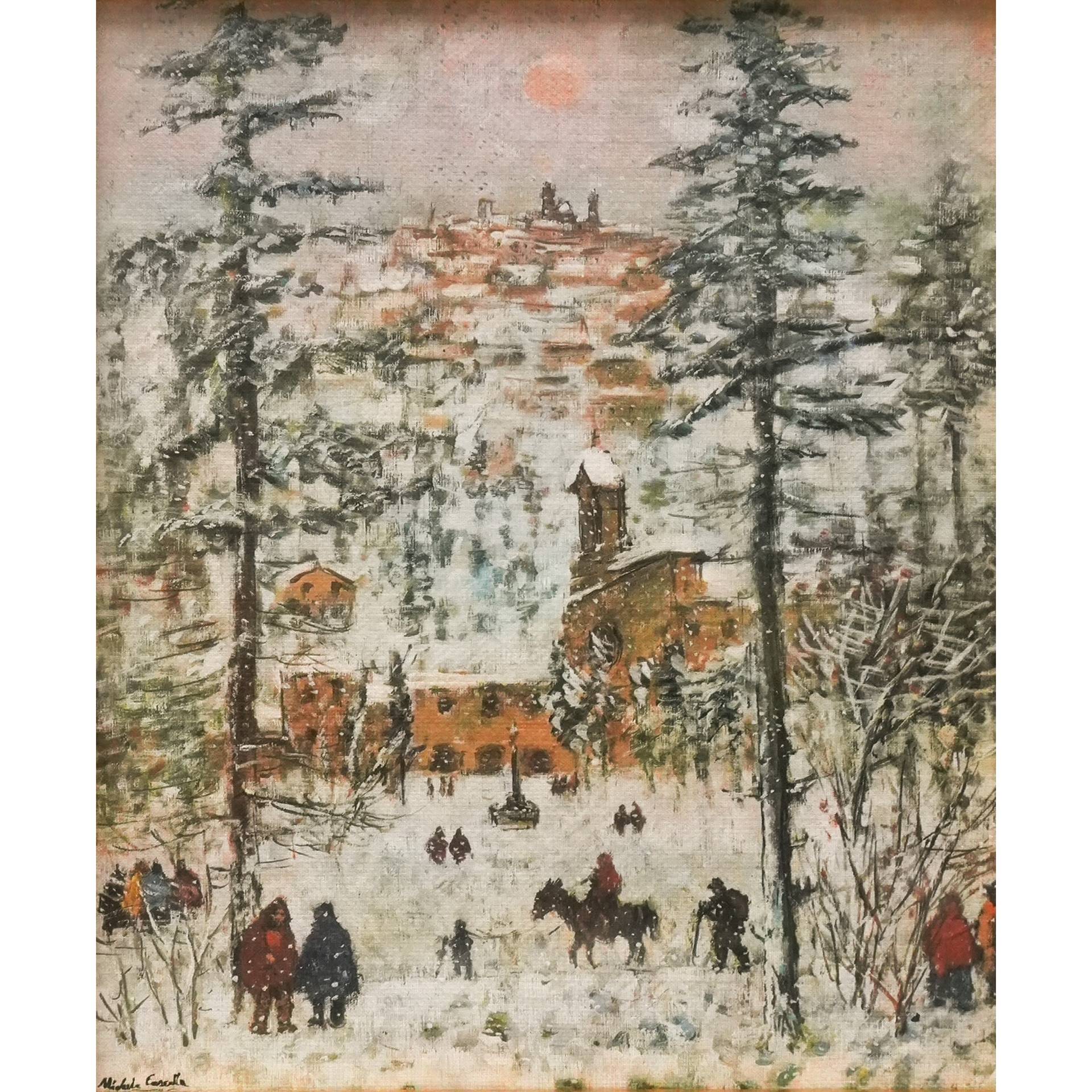 Michele Cascella (Ortona 1892-Milano 1989) - Inverno H cm 21,5x26,5 - in cornice H cm 46x41 Cromolitografia Firma in basso a sinistra. Certificato al retro di Arteviva S.r.l. L'opera è stata realizzata su tela in 499 esemplari.