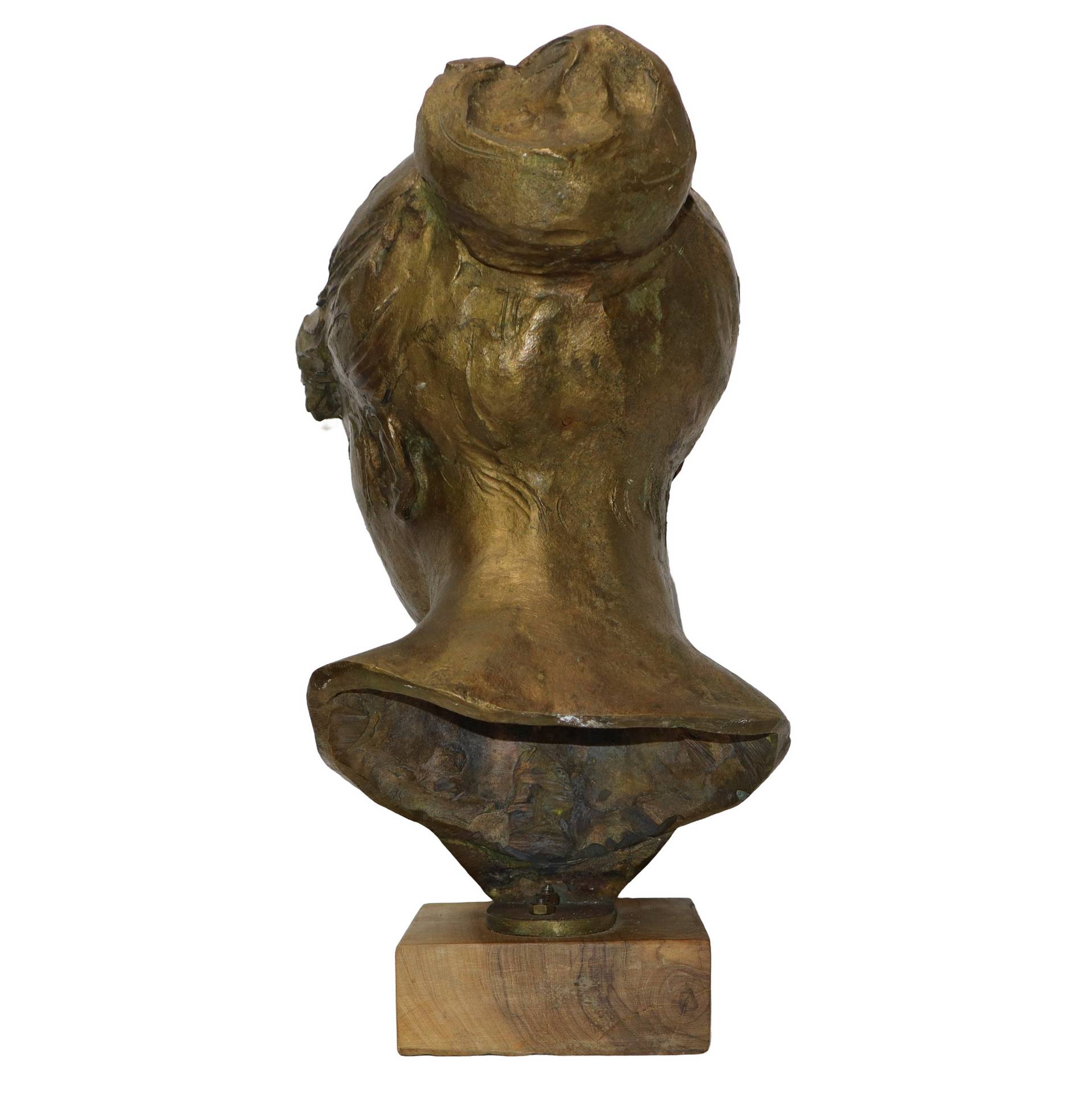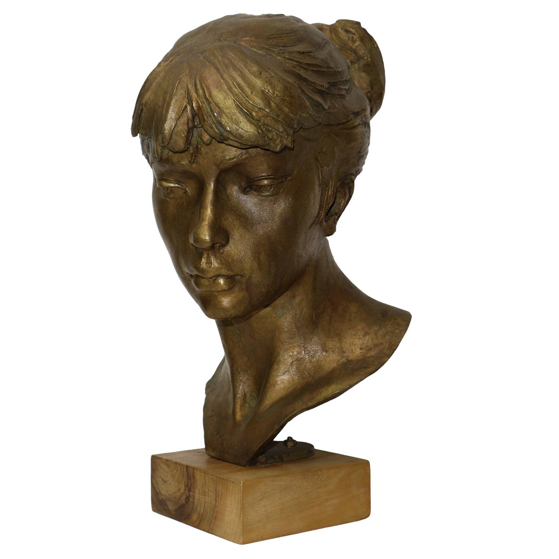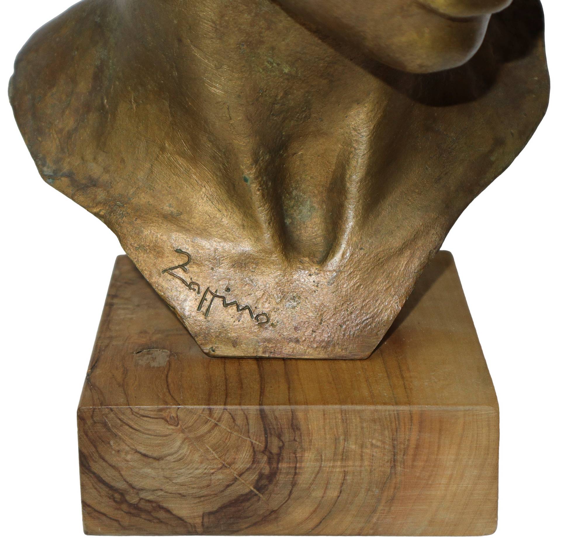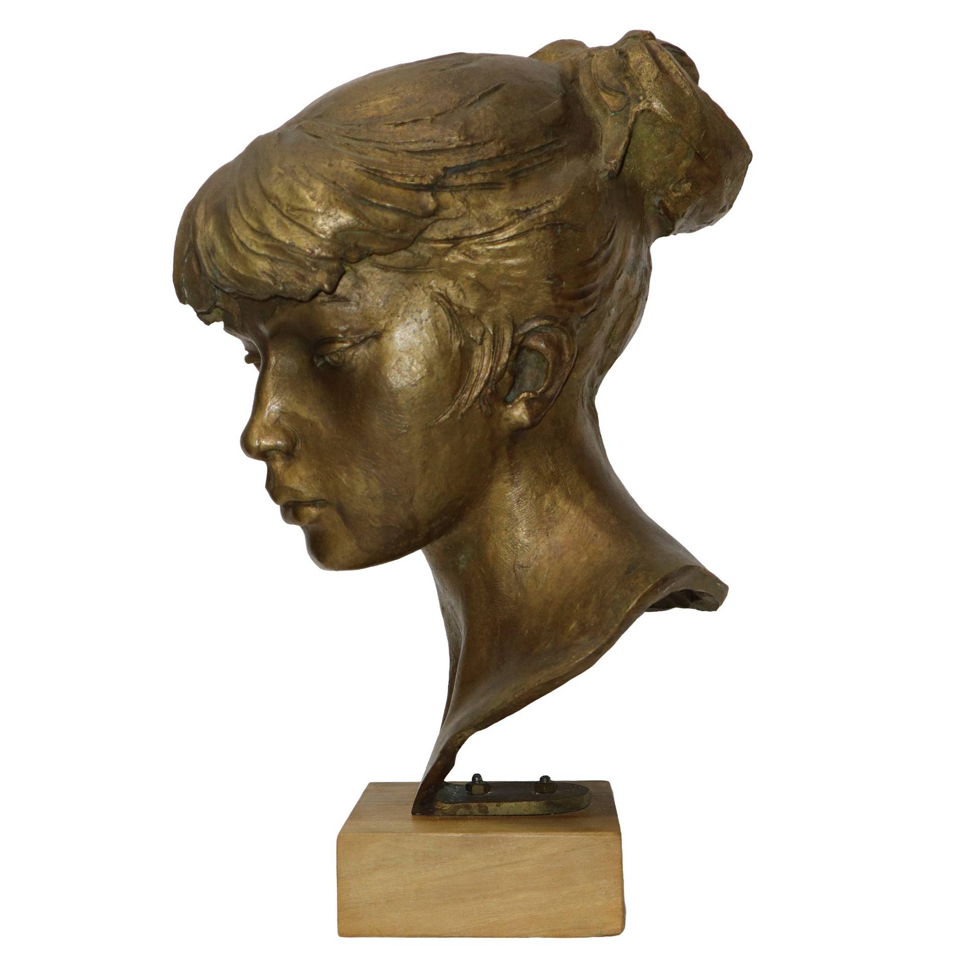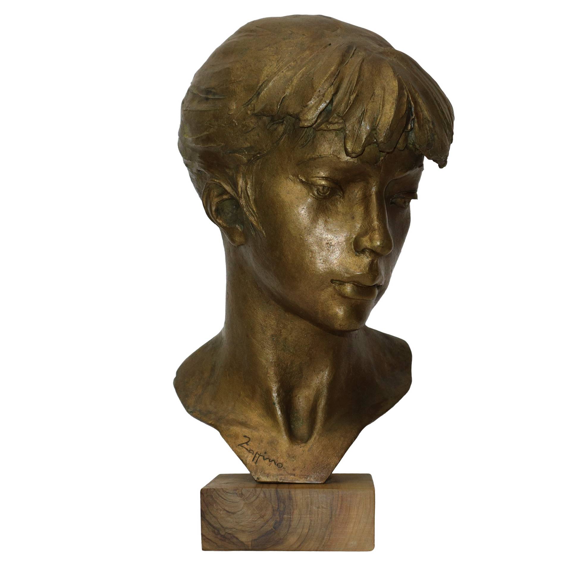 Michele Zappino (Zungri 1949) - Testa di fanciulla H cm 36x26 - con base H cm 41,5 Bronzo patinato oro Firmato in basso. Base di legno.