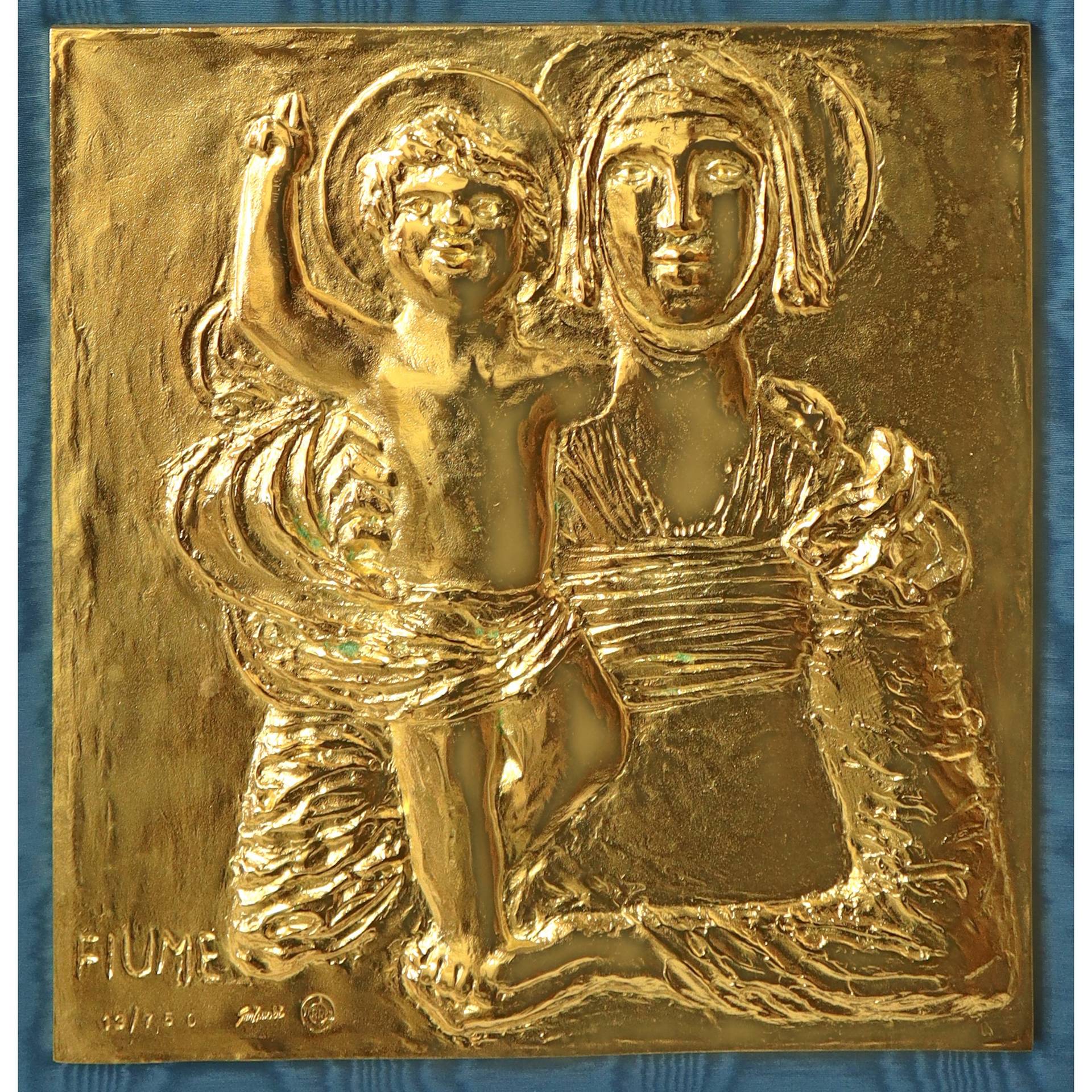 Salvatore Fiume (Comiso 1915-Milano 1997) - Maternita' H cm 30x30 Bronzo a rilievo (dore') 13/750. In cofanetto. Edizioni Sanzanobi