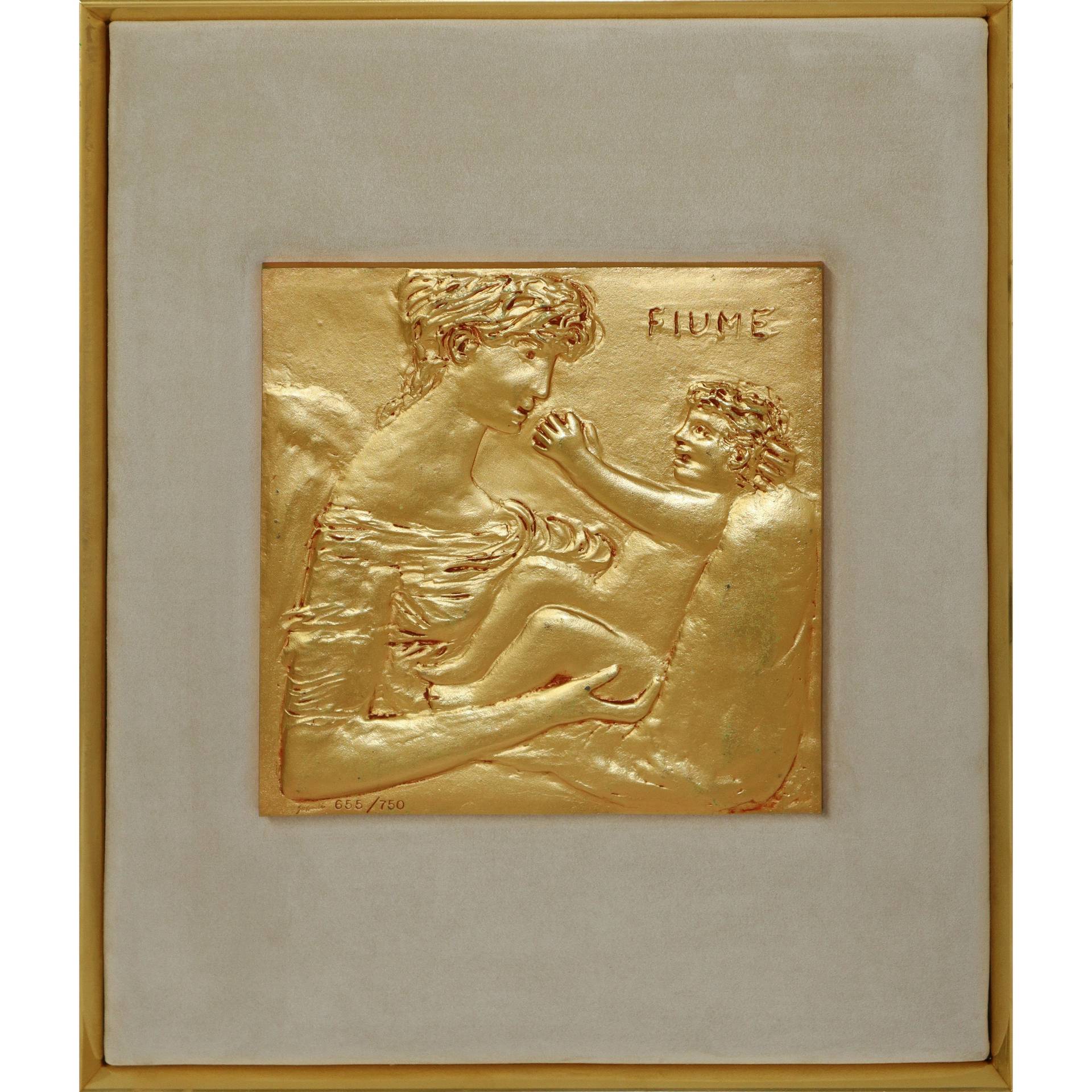 Salvatore Fiume (Comiso 1915-Milano 1997) - Alma Mater, Donna educatrice alla pace H cm 30x30 Bronzo dorato (dans boîte) 655/750. In cofanetto