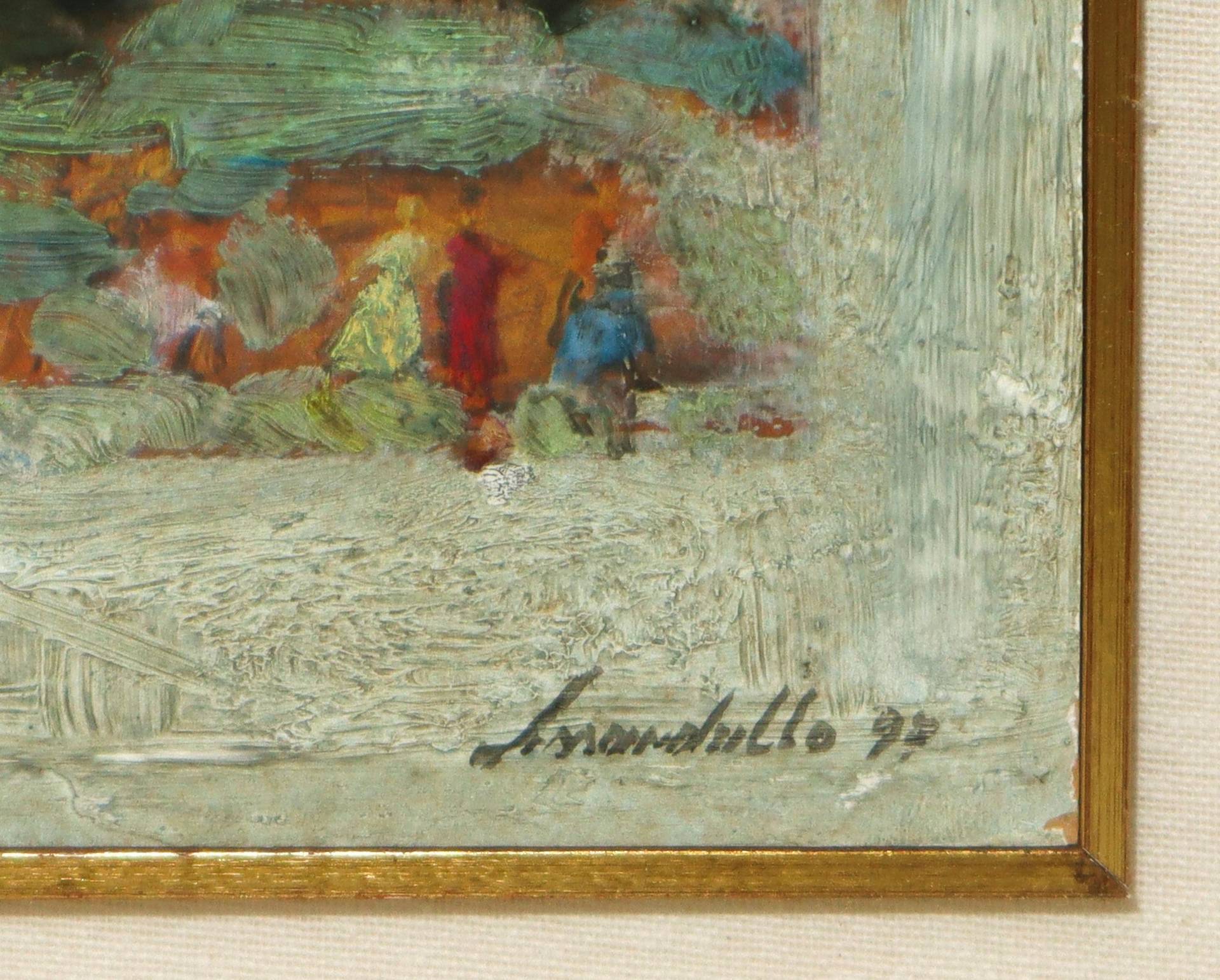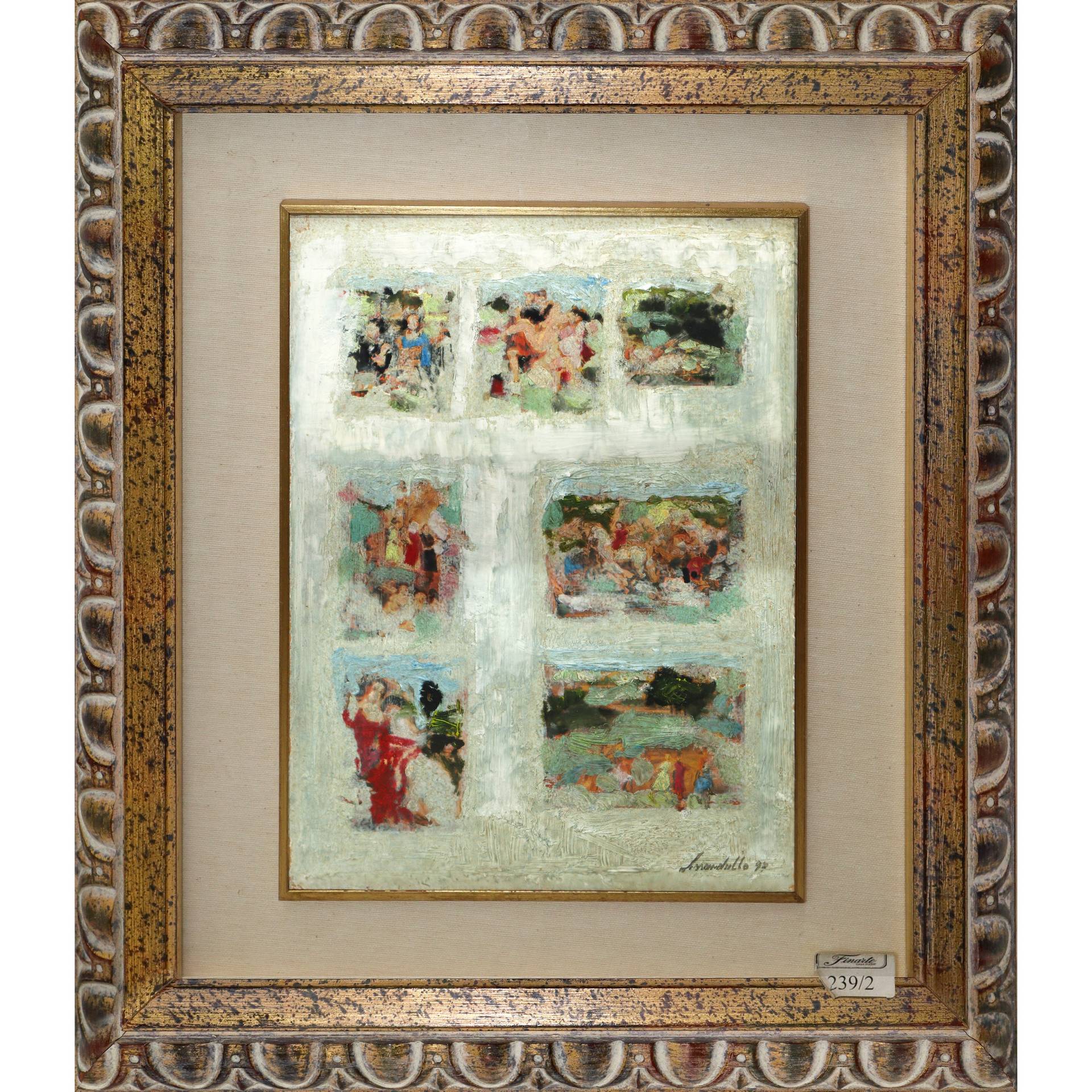 Giovanni Lissandrello (Ragusa 1942) - Composizione, 1997 H cm 33x24 - in cornice H cm 54x46 Olio su faesite Firmato e datato in basso a destra.