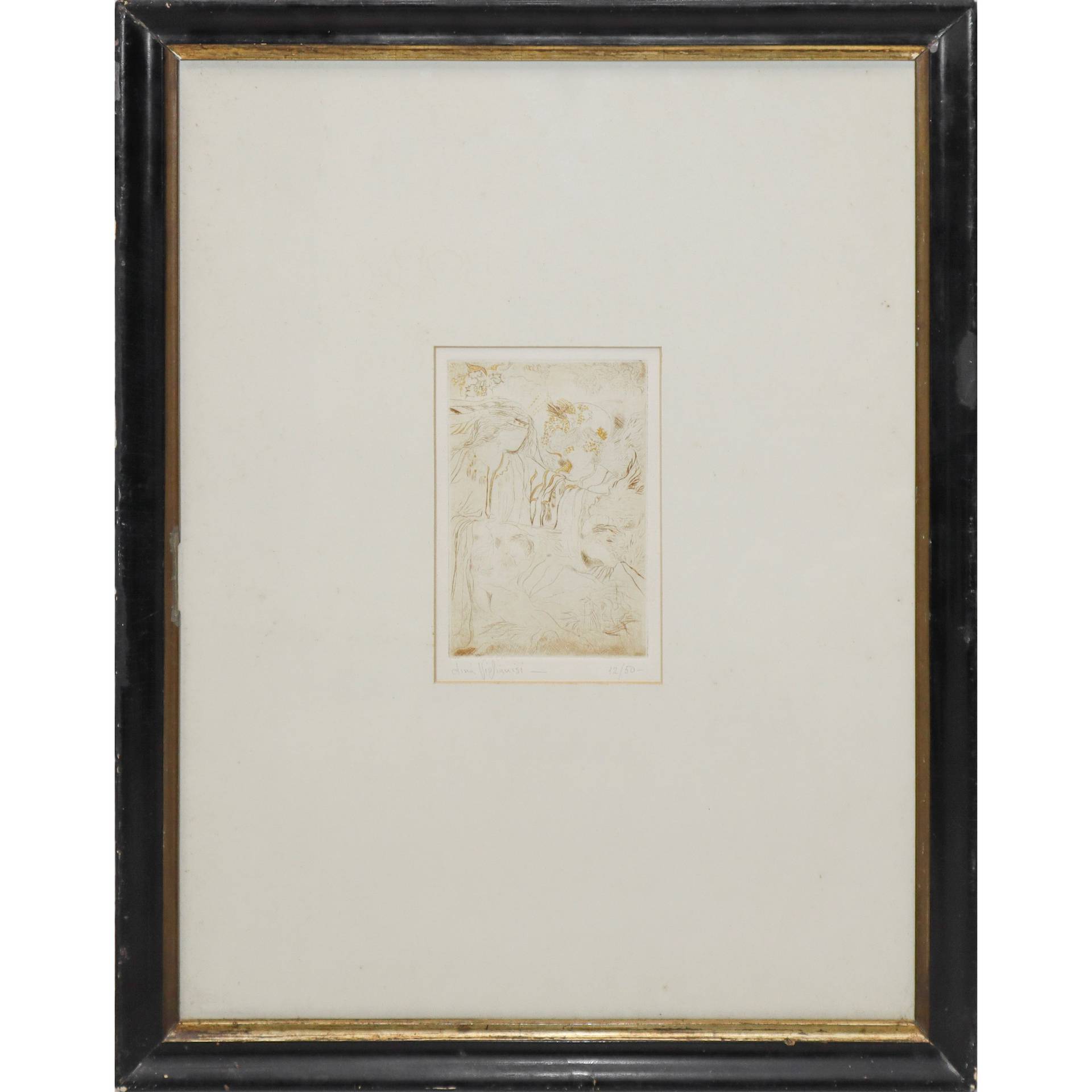 Dina Viglianisi (Catania 1939) - Senza titolo cm 15x10 in cornice cm 47x37 Incisione su carta Es.12/50. Firma e tiratura al fronte