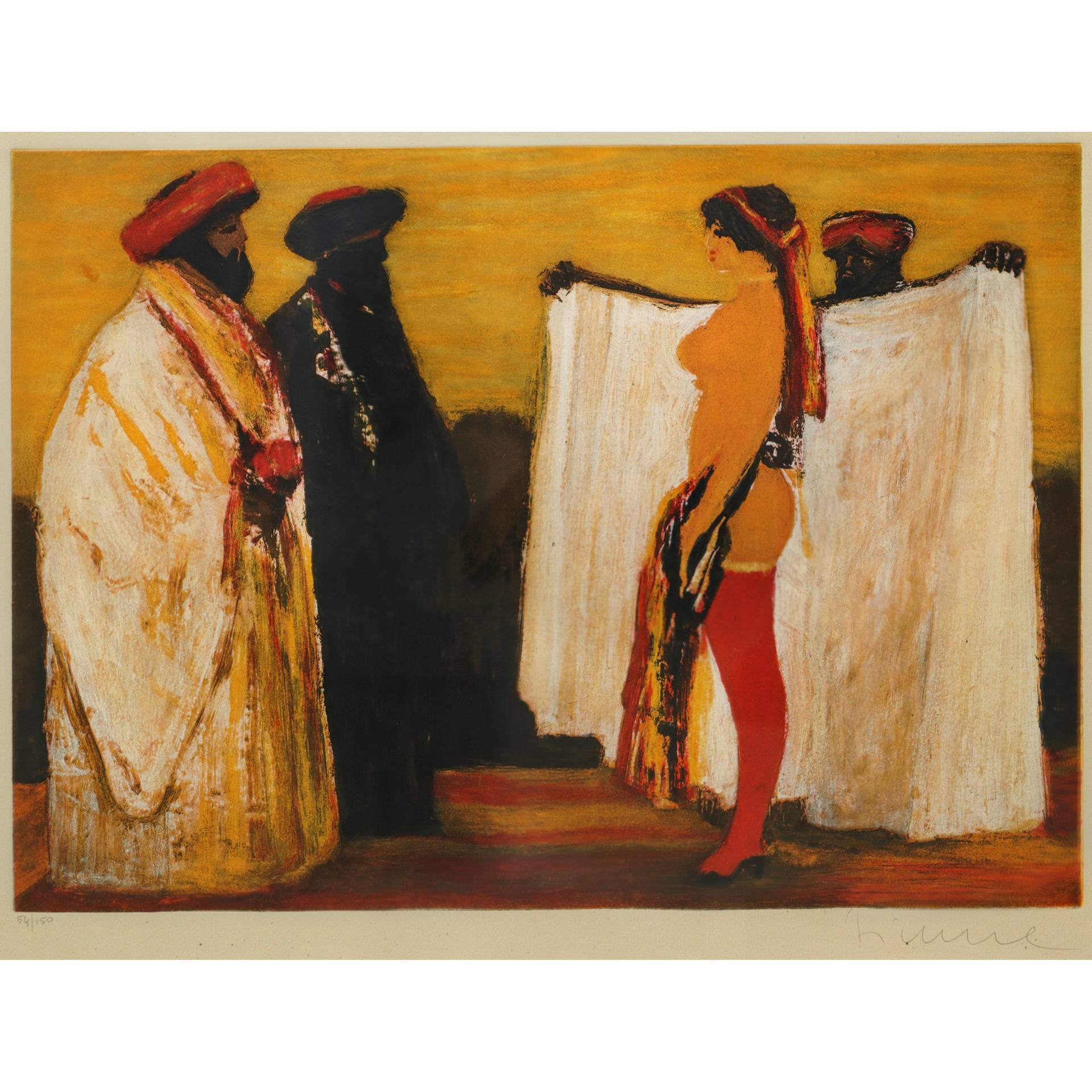 Salvatore Fiume (Comiso 1915-Milano 1997) - Arabi e somala H cm 60x80 Litografia a colori su cartoncino 64/150. Firmato in basso a destra.