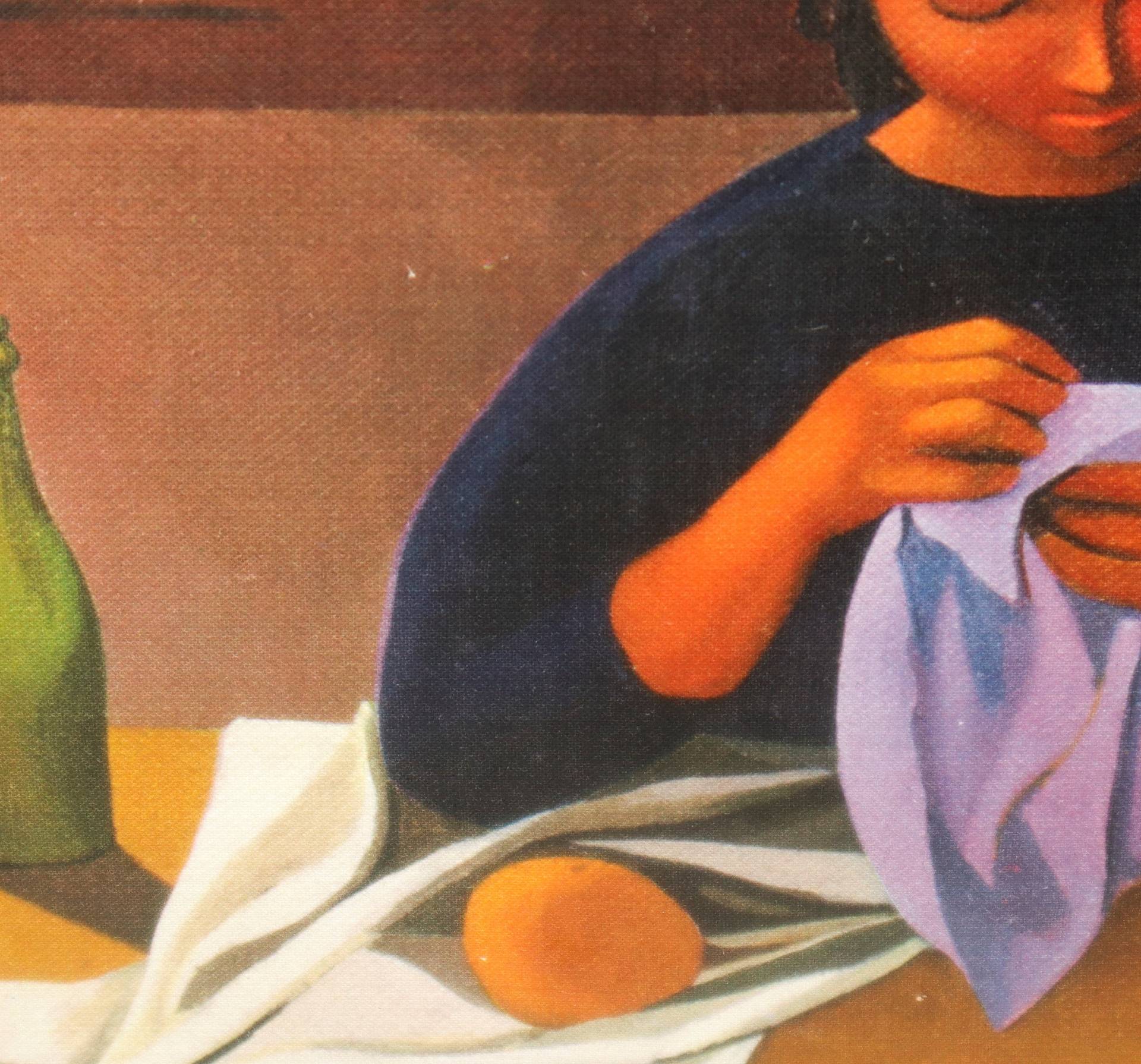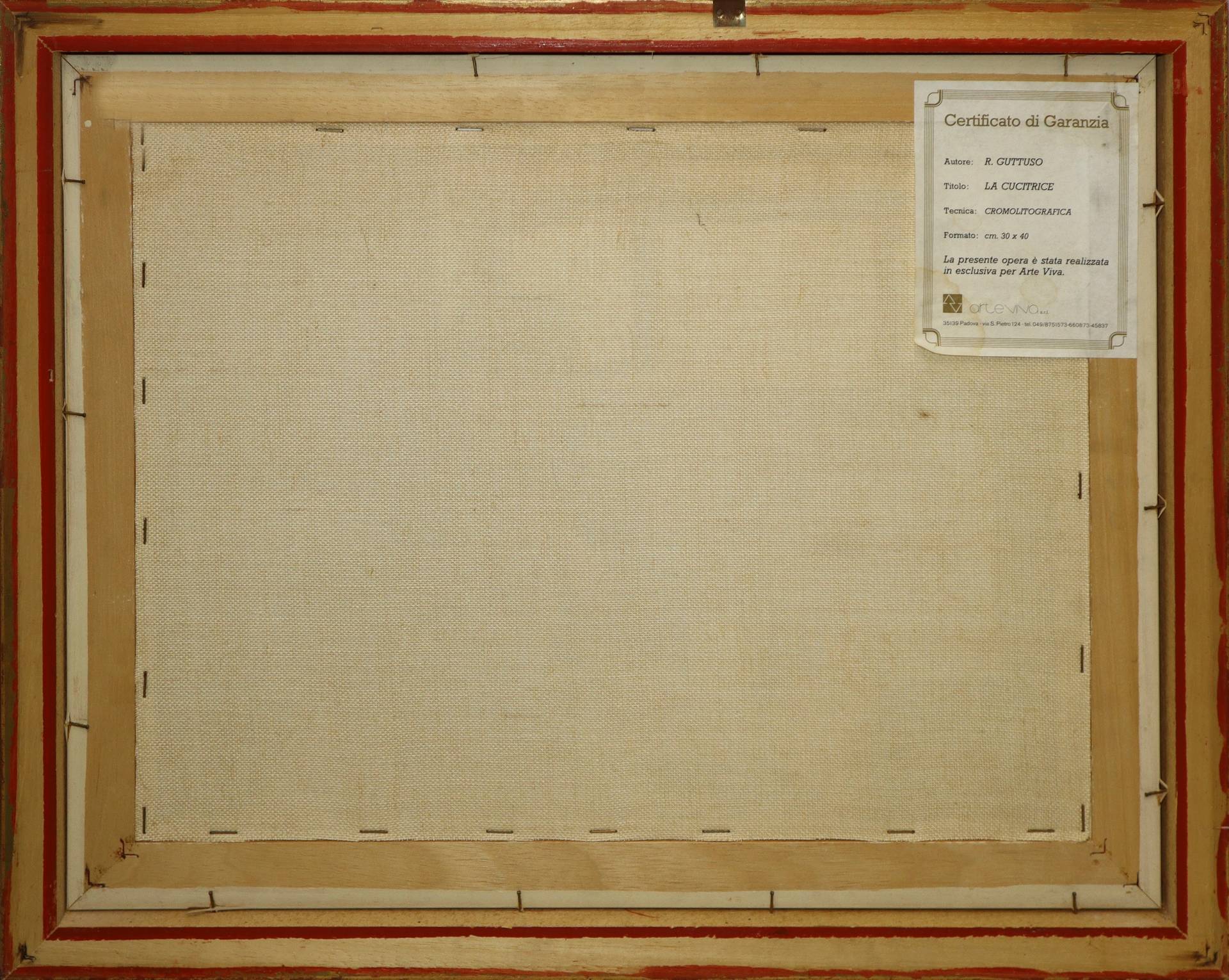 Renato Guttuso (Bagheria 1911-Roma 1987) - La cucitrice H cm 32x42 - in cornice H cm 43,5x53,5 Cromolitografia su tela Firmato al fronte in basso a sinistra. Al retro Certificato di Garanzia Arte Viva Padova.