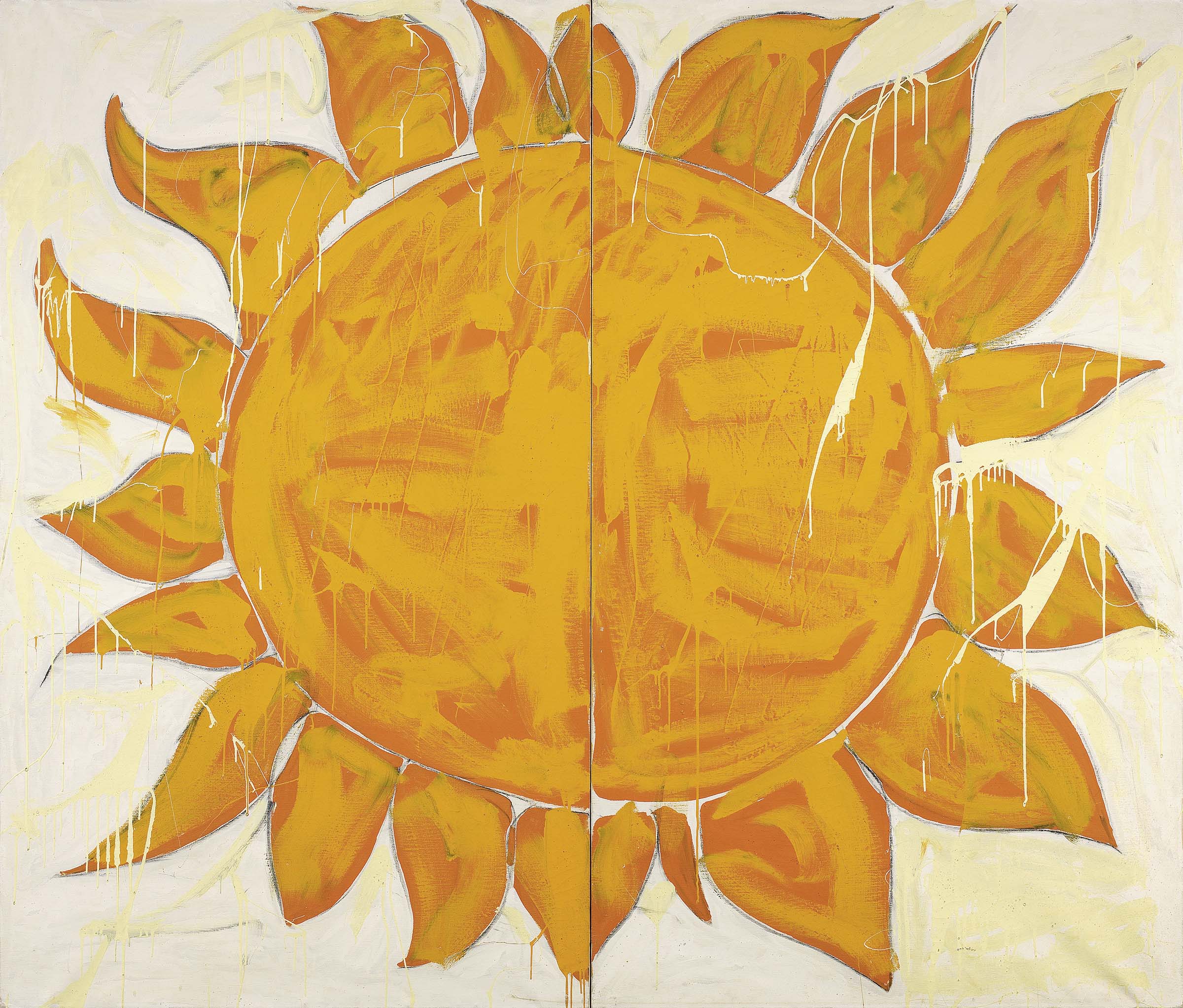 Mario Schifano Homs 1934 - Roma 1998 O sole mio, 1978 Smalto su tela, dittico, cm. 195,5x228 Titolo e firma al verso sulla tela: O sole mio / Schifano; sul telaio: etichetta Fondazione Mario Schifano / Archivio Generale dell'Opera Pittorica di Mario Schifano, con n. 78/39: due etichette Aurelio Stefanini, Firenze, con n. 0172/2000: etichetta L'arte in azienda / Mario Schifano / Bologna. Bibliografia: Studio metodologico riguardante la catalogazione informatica dei dati relativi alle opere di Mario Schifano presenti presso la Fondazione M. S. Multistudio. Vol A)1° Opere su tela 1956 - 1982, Università degli Sudi di Genova, 2007, p. 331, n. 78/039. Vendita per conto del Tribunale di Livorno.